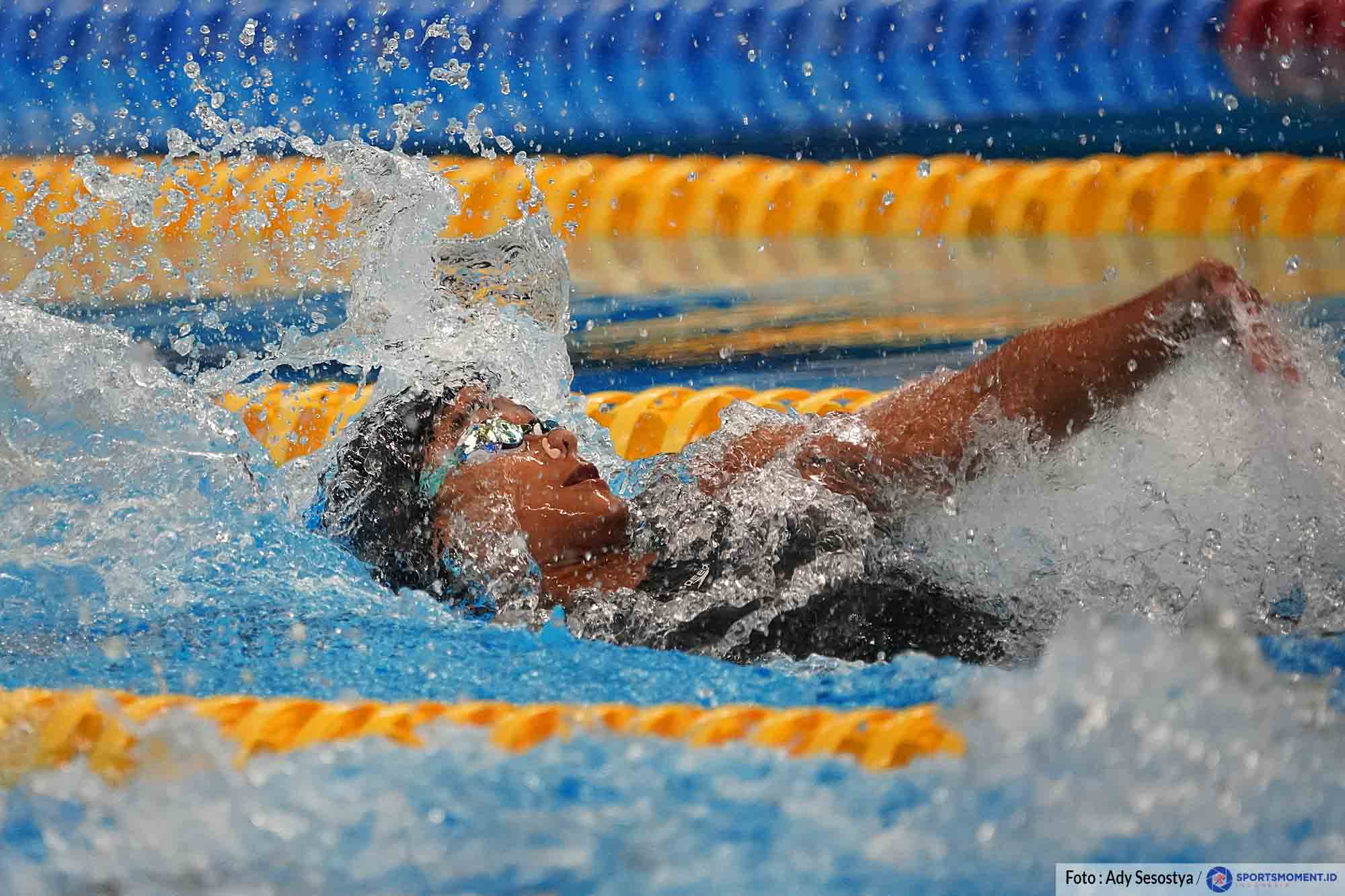 Perenang Indonesia AA ISTRI KANIA RATIH ATMAJA berhasil menjadi yang tercepat dengan catatan waktu 29,73 detik pada final 50 meter gaya punggung putri National Time Trial di Stadion Akuatik Gelora Bung Karno, Sabtu (23/04/2022). Ajang ini digelar sebagai persiapan akhir menjelang SEA Games 2022 Vietnam. (Photo : Ady Sesotya/Sportsmoment.id)