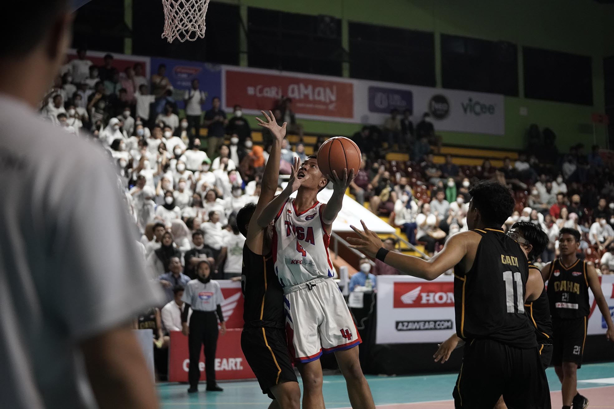 Pebasket SMAN 3 Jakarta, Natazio Sebastian (4) menguasai bola saat melawan tim SMAN 82 Jakarta pada turnamen Basket Honda DBL with KFC 2022 DKI Jakarta Series - North & Central Region yang berlangsung pada Jumat, 7 Oktober 2022 di GOR Bulungan Jakarta. SMAN 3 Jakarta unggul atas SMAN 82 Jakarta dengan skor 35-23 (Foto by : Sportsmoment.id/Erly Bahtiar).