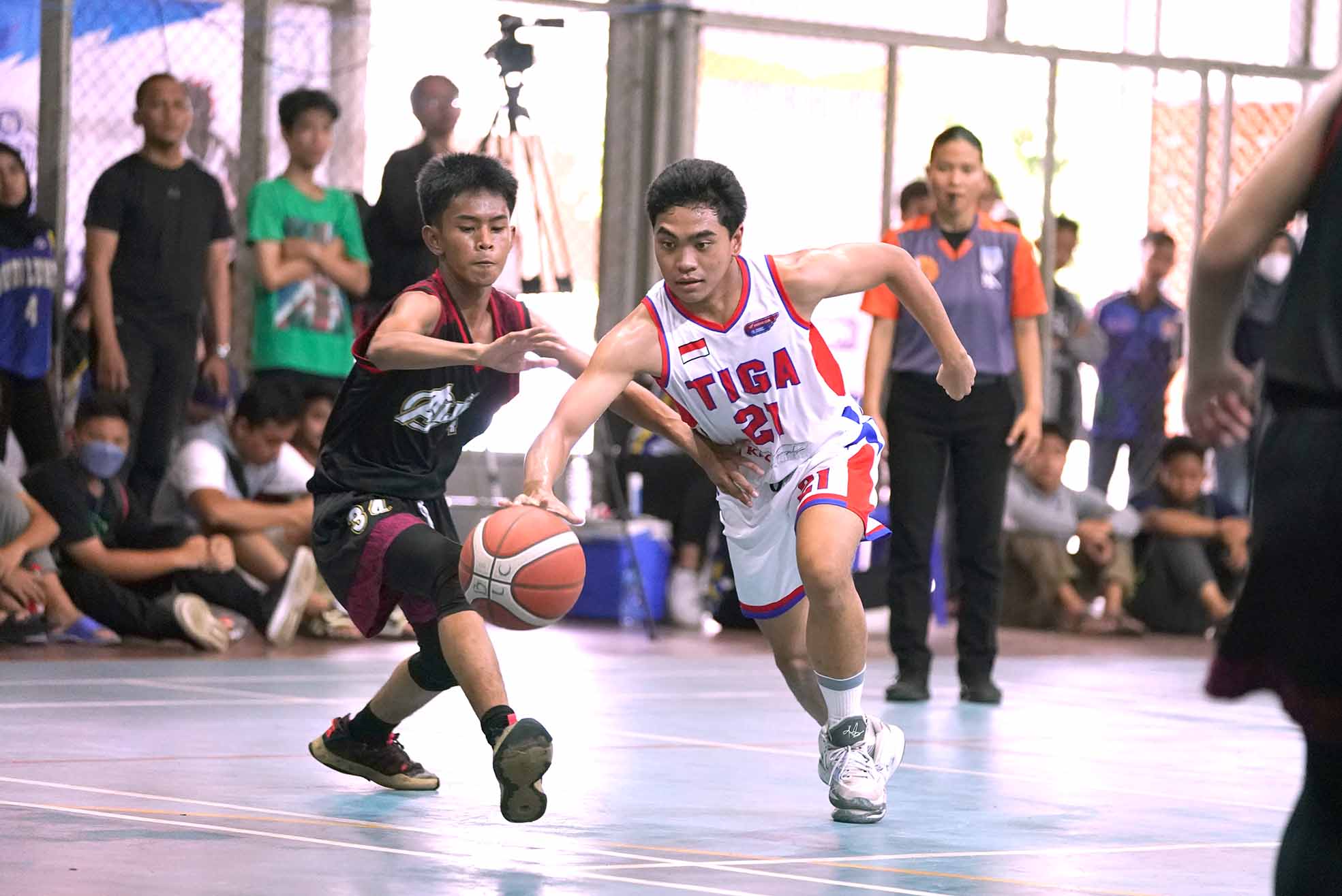 Farly Farrelino (21) pemain SMA Negeri 3 Jakarta beraksi saat tim Basket SMA Negeri 3 Jakarta mengalahkan tim basket SMA MAN 10 Jakarta dengan skor akhir 34 - 28 di final turnamen bola basket antar SLTA memperebutkan Piala Universitas Budi Luhur pada Sabtu 11 Februari 2023 di lapangan Basket Universitas Budi Luhur, Tangerang. (Foto : ErlyBahtiar / Sportsmoment)