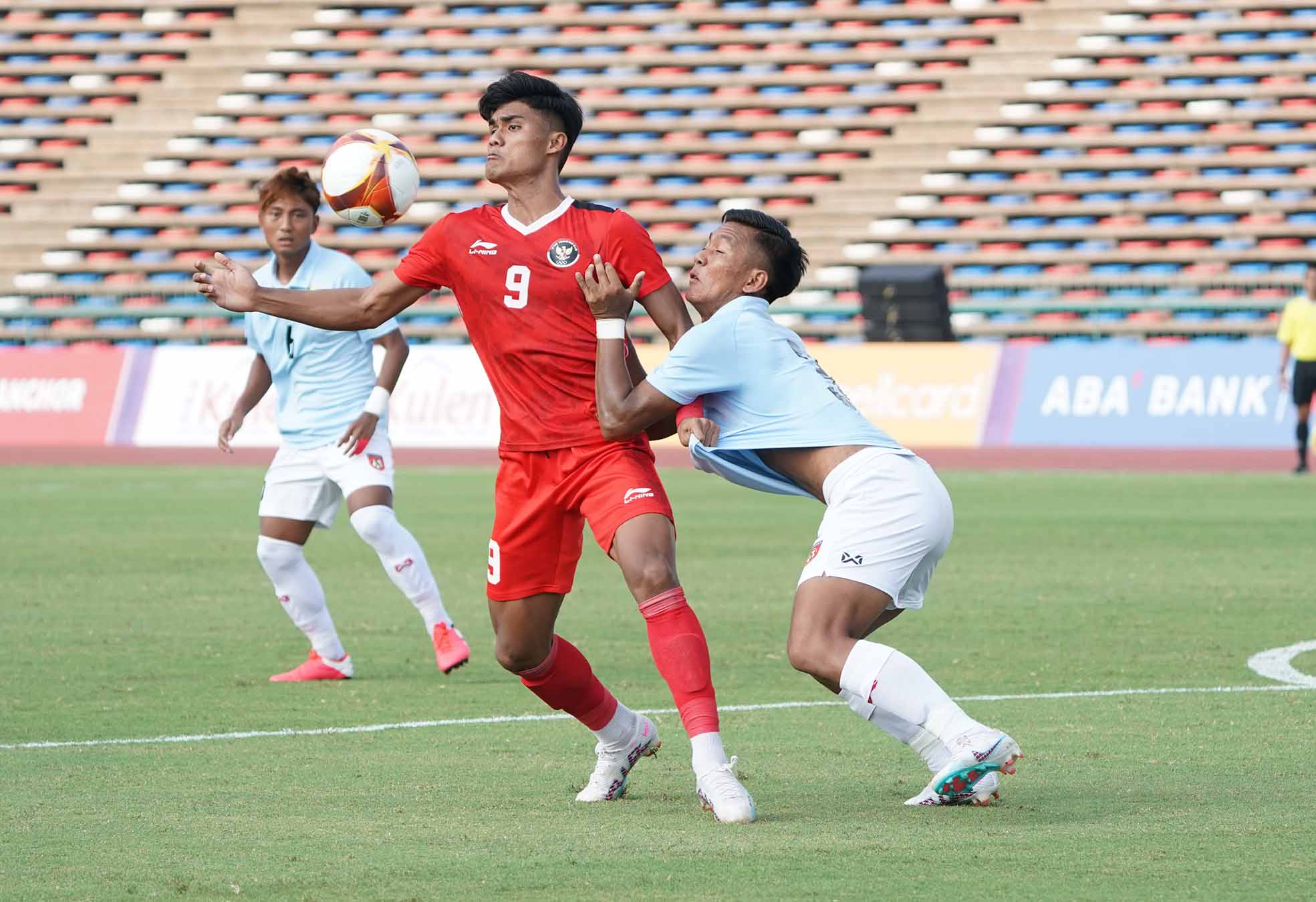 Aksi pemain Timnas Indonesia U-22, Muhammad Ramadhan Sananta (9) saat melawan Timnas Myanmar U-22. Indonesia berhasil menang telak 5-0 atas Myanmar pada laga kedua grup A SEA Games 2023 di National Stadium Olympic Pnom Penh Kamboja, Kamis, 4 Mei 2023 (Foto : sportsmoment.id/Erly Bahtiar).