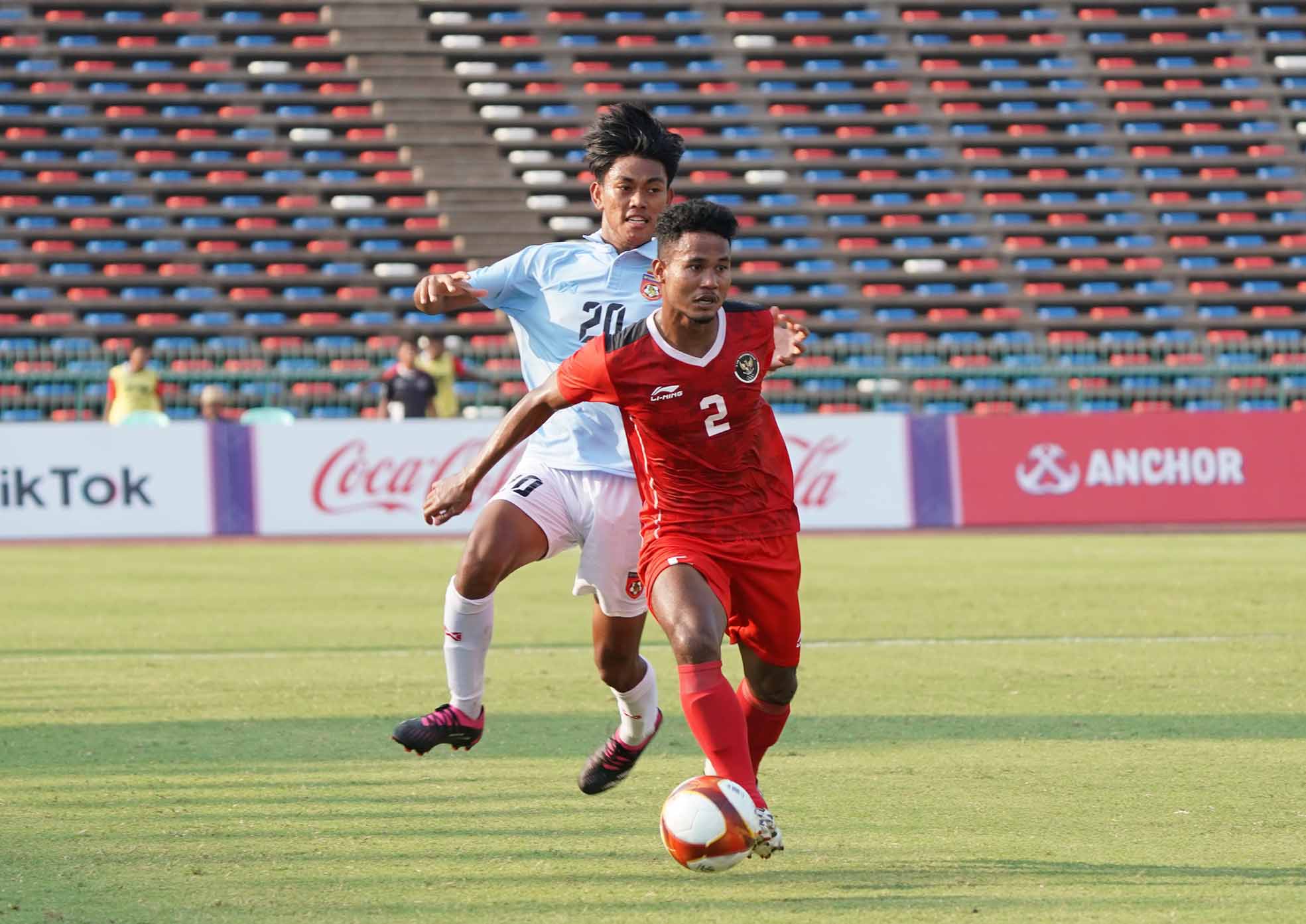Aksi pemain Timnas Indonesia U-22, Amiruddin Bagas Kaffa Arrizqi (2) saat melawan Timnas Myanmar U-22. Indonesia berhasil menang telak 5-0 atas Myanmar pada laga kedua grup A SEA Games 2023 di National Stadium Olympic Pnom Penh Kamboja, Kamis, 4 Mei 2023 (Foto : sportsmoment.id/Erly Bahtiar).,