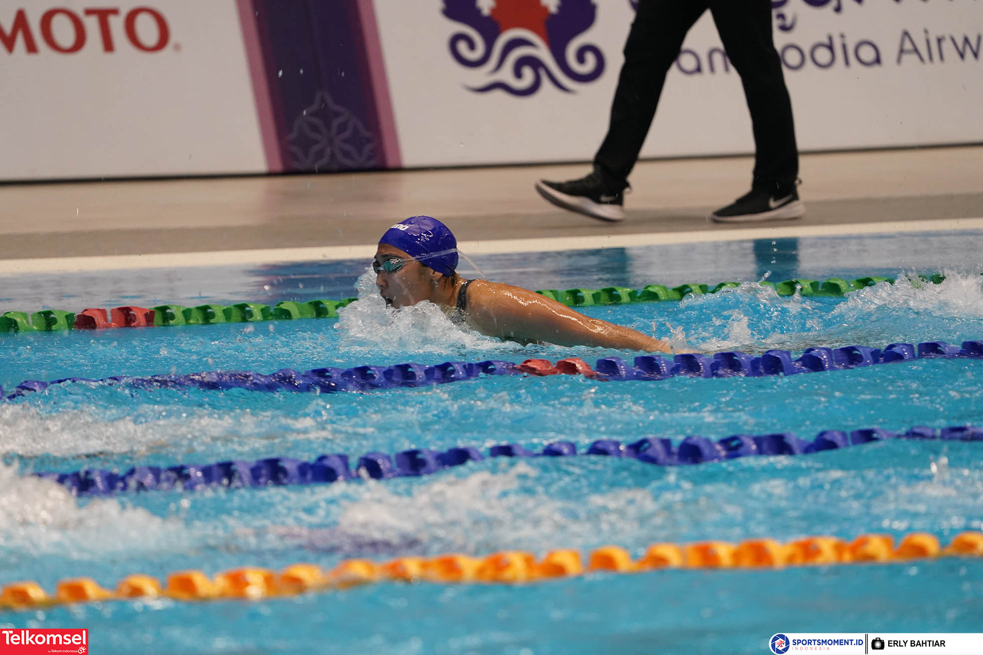 Atlet renang Indonesia, Adinda Kusuma Ningrum di nomor 200 meter gaya kupu-kupu putri pada gelaran SEA Games 2023, Kamboja, Sabtu (6/5). (Foto : sportsmoment.id/Erly Bahtiar)