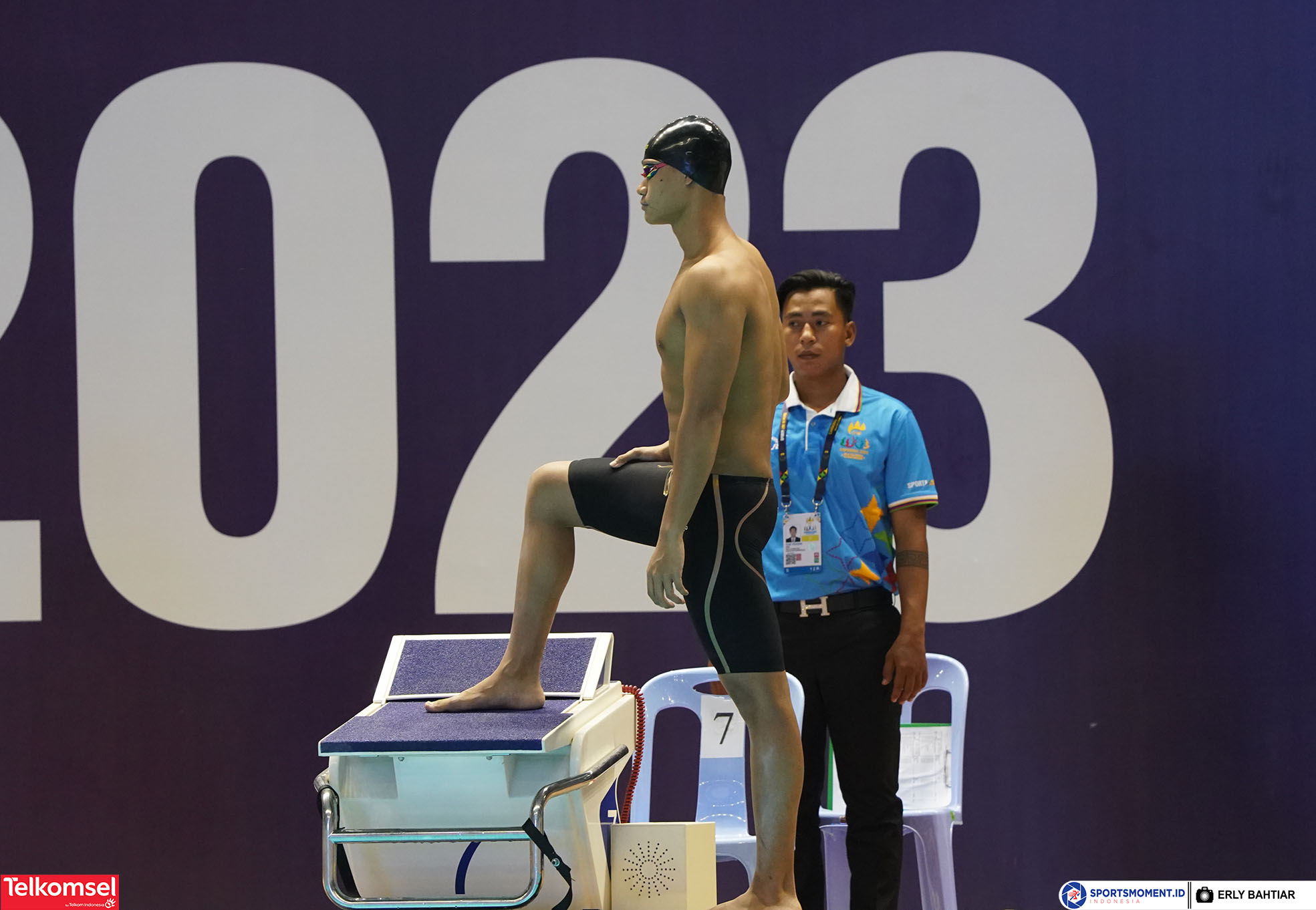 Atlet renang Indonesia, Joe Aditya di nomor 100 meter gaya bebas putra pada gelaran SEA Games 2023, Kamboja, Sabtu (6/5). (Foto : sportsmoment.id/Erly Bahtiar)