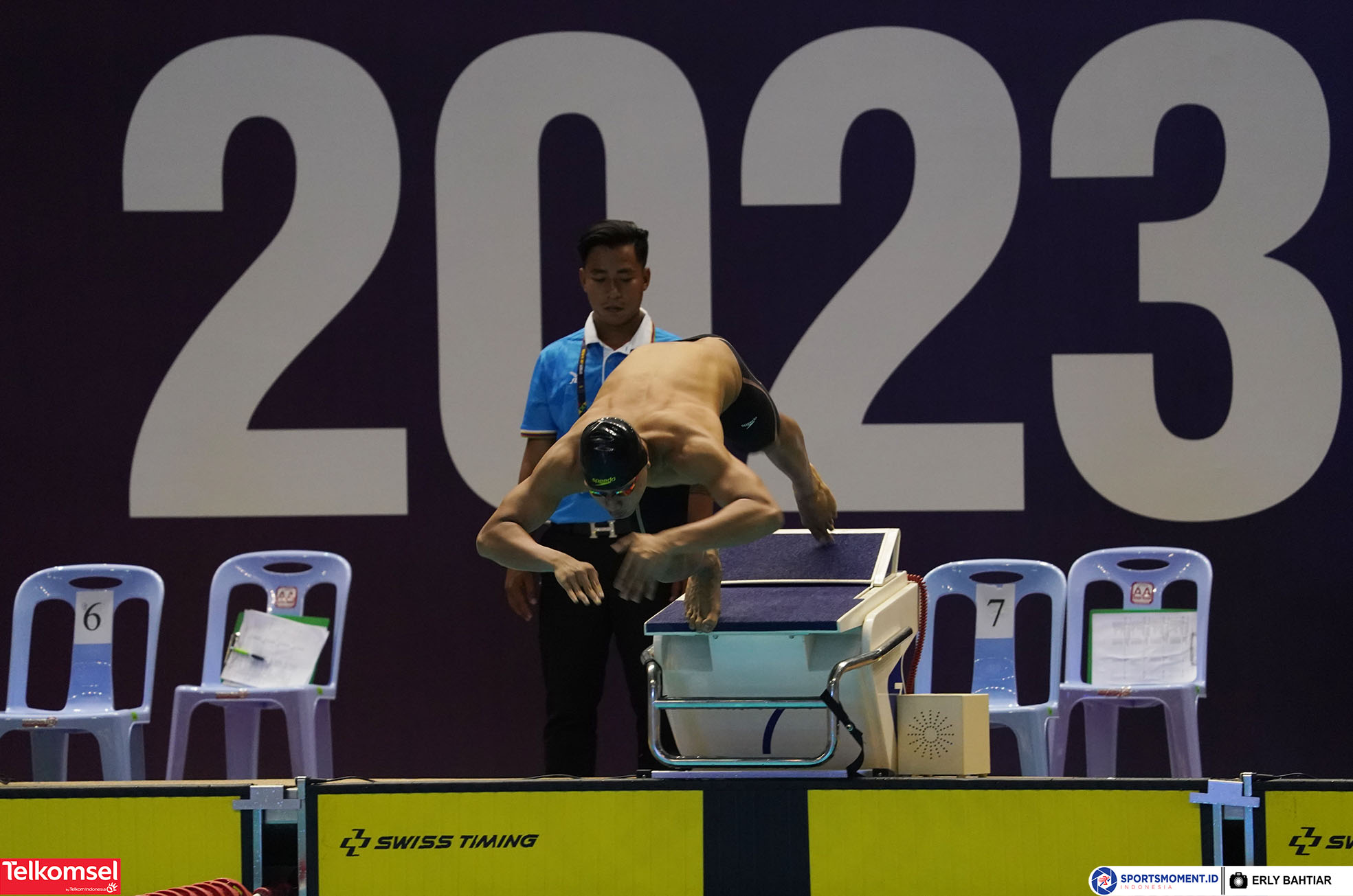 Atlet renang Indonesia, Joe Aditya di nomor 100 meter gaya bebas putra pada gelaran SEA Games 2023, Kamboja, Sabtu (6/5). (Foto : sportsmoment.id/Erly Bahtiar)