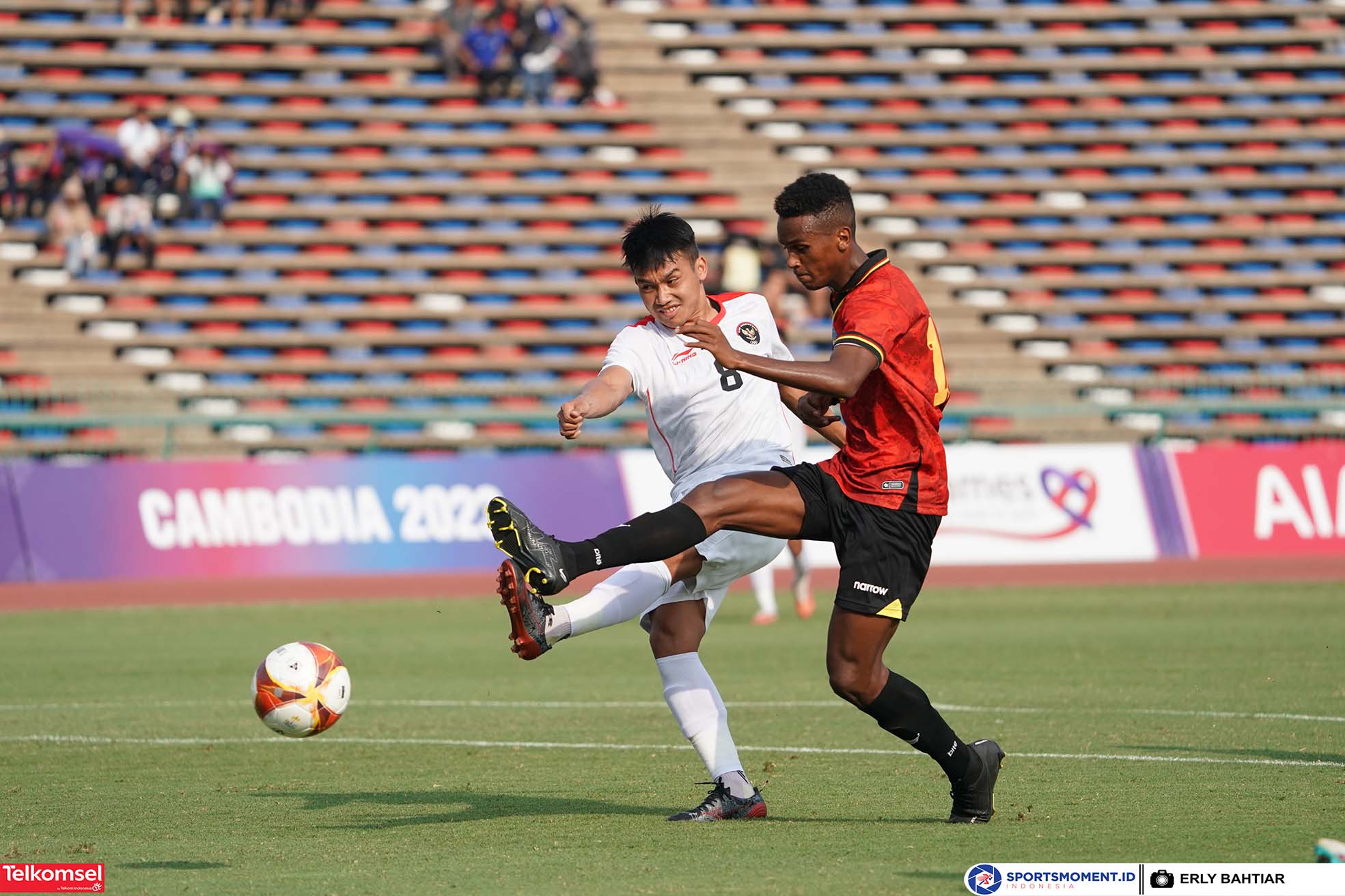 Aksi pemain Timnas Indonesia U-22, Witan Sulaeman (8) saat melawan Timnas Timor Leste U-22. Indonesia berhasil menang 3-0 atas Timor Leste pada laga ketiga grup A SEA Games 2023 di National Stadium Olympic Pnom Penh Kamboja, Minggu, 7 Mei 2023 (Foto : sportsmoment.id/Erly Bahtiar).