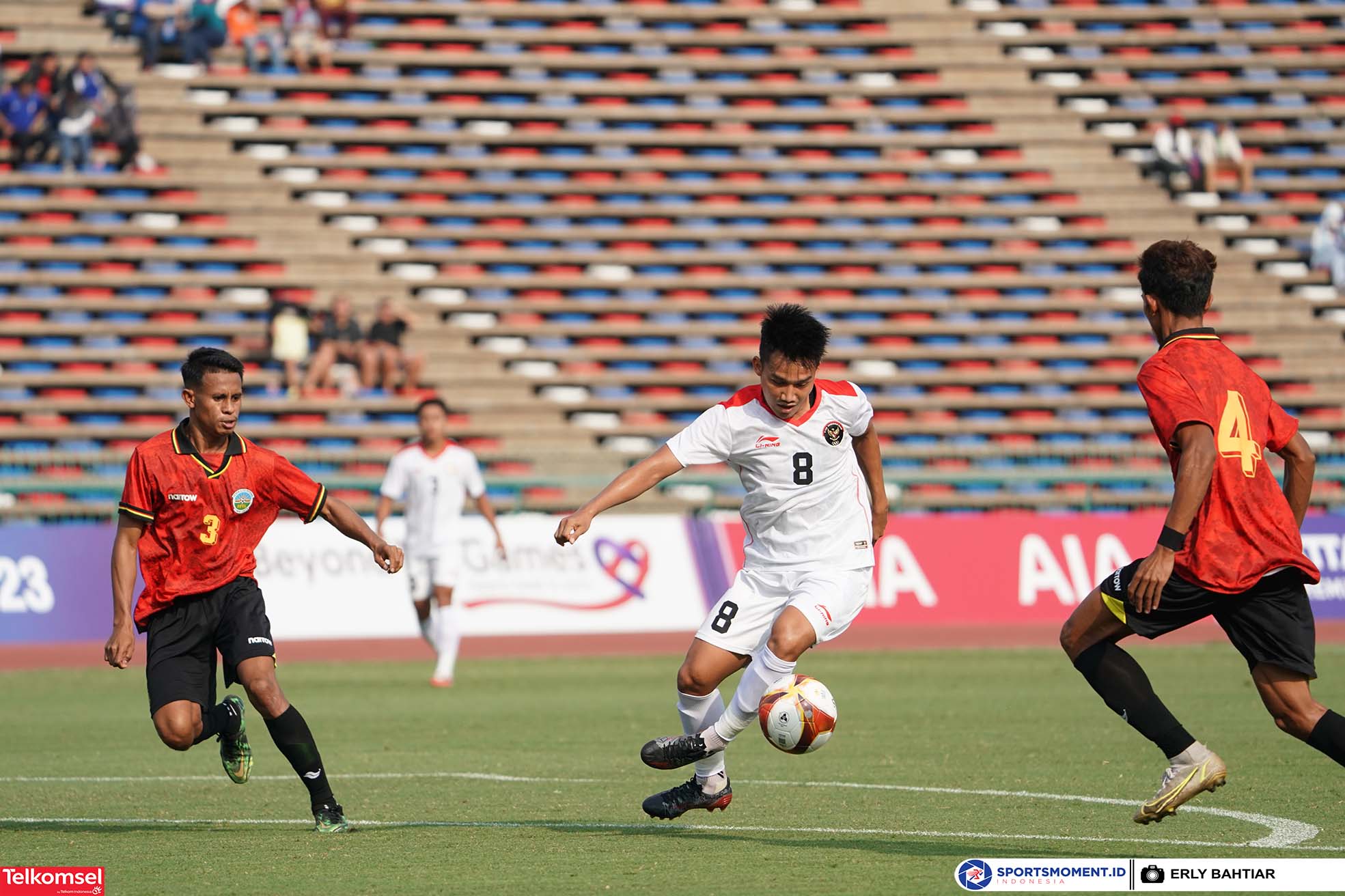 Aksi pemain Timnas Indonesia U-22, Witan Sulaeman (8) saat melawan Timnas Timor Leste U-22. Indonesia berhasil menang 3-0 atas Timor Leste pada laga ketiga grup A SEA Games 2023 di National Stadium Olympic Pnom Penh Kamboja, Minggu, 7 Mei 2023 (Foto : sportsmoment.id/Erly Bahtiar).