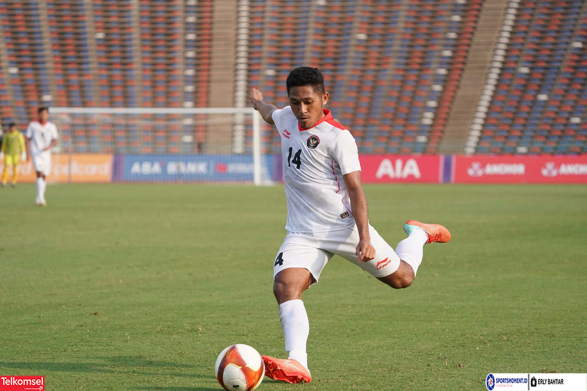 Aksi pemain Timnas Indonesia U-22, Muhammad Fajar Fathur Rachman (14) saat melawan Timnas Timor Leste U-22. Indonesia berhasil menang 3-0 atas Timor Leste pada laga ketiga grup A SEA Games 2023 di National Stadium Olympic Pnom Penh Kamboja, Minggu, 7 Mei 2023 (Foto : sportsmoment.id/Erly Bahtiar).
