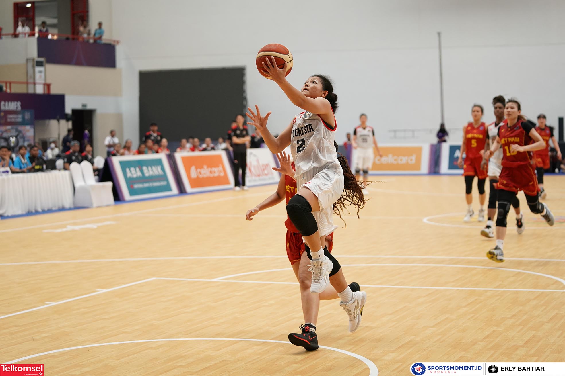 Aksi pebasket putri Indonesia, Agustin Elya Gradita (2) pada laga perdana melawan Tim Basket Putri Vietnam pada gelaran SEA Games 2023 yang diselenggarakan di Morodok Techo Stadium, Selasa (9/5/2023) . Indonesia unggul dengan skor 67-62 atas Vietnam. (Foto: sportsmoment.id/Erly Bahtiar)