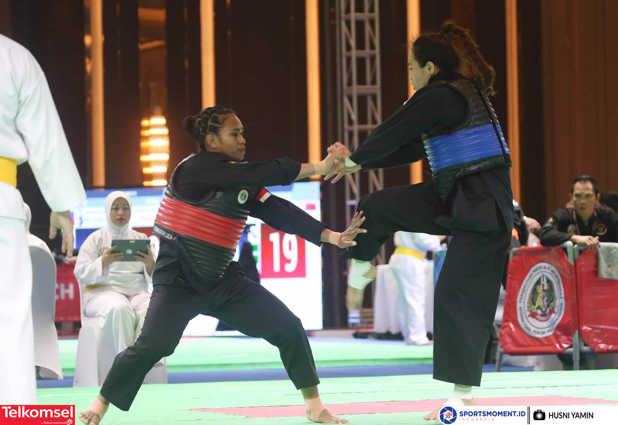 Pesilat Indonesia, Jeni Elvis Kause berhasil merebut medali Emas di Nomor Tanding Kelas C (55kg-60kg) Sea Games 2023 Kamboja di Chory Changvar International Convention and Exibhition Center, Phonm Penh, Rabu (10/5/2023). (Foto: sprtsmoment.id/Husni Yamin)