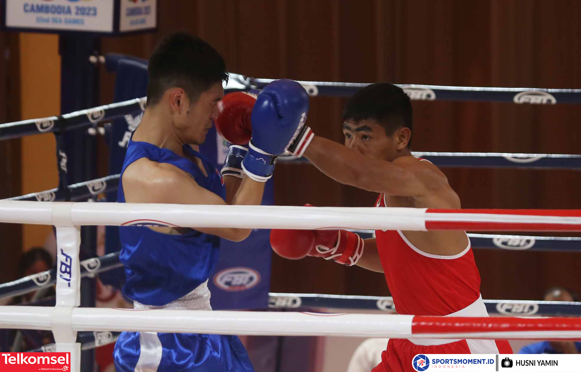 Petinju Indonesia Asri Udin berhasil masuk ke babak final cabang tinju kelas 57 Kg setelah mengalahkan petinju Laos, Sea Games 2023 Kamboja di Chory Changvar International Convention Center, Phnom Penh (10/5/2023) (Sportsmoment.id/Husni Yamin)