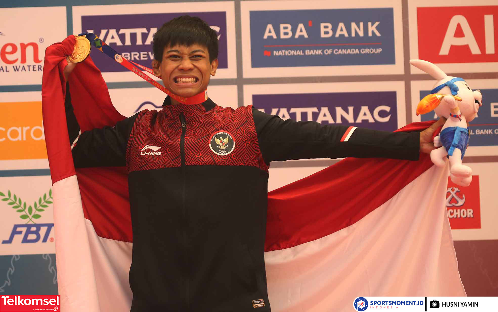 Atlet Wushu Indonesia, Laksmana Pandu meraih medali Emas di Nomor Sanda 52 Kg, setelah di partai final mengalahkan atlet wushu Thailand pada gelaran Sea Games 2023 Kamboja di Chory Changvar International Convention Center, Phnom Penh (12/5/2023) (Sportsmoment.id/Husni Yamin)