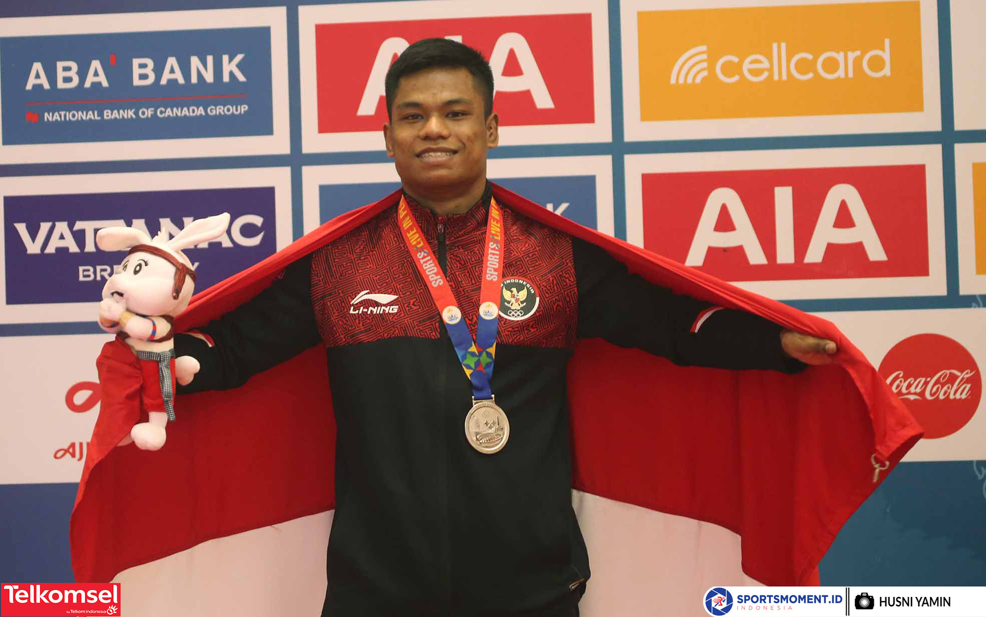 Atlet Wushu Indonesia, Samuel Marbun meraih medali Perak di Nomor Sanda 65 Kg, setelah difinal dikalahkan atlet wushu Thailand pada gelaran Sea Games 2023 Kamboja di Chory Changvar International Convention Center, Phnom Penh (12/5/2023) (Sportsmoment.id/Husni Yamin)