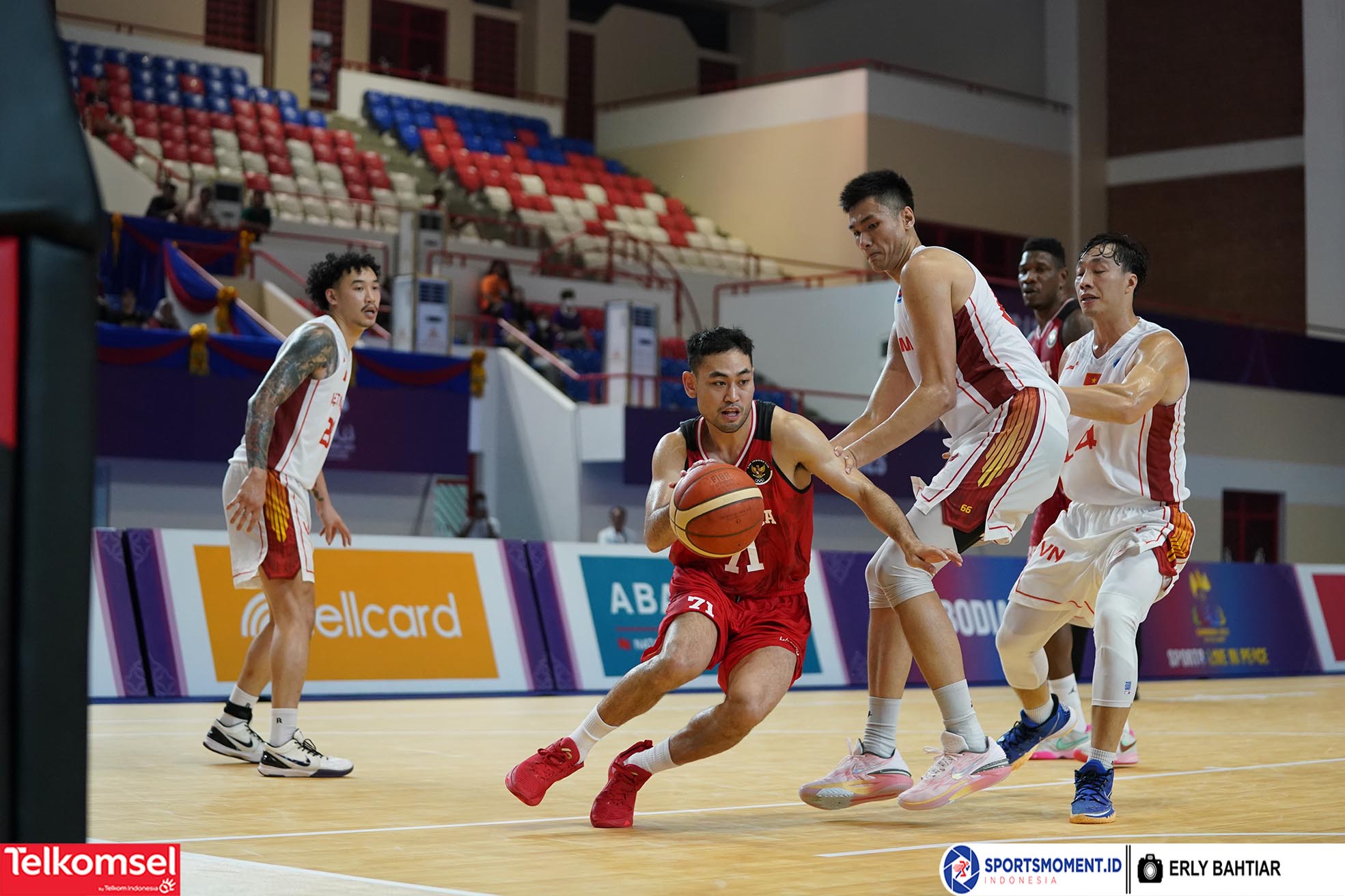 Aksi pebasket putra Indonesia, Widyanta Putra Teja (71) pada laga kedua SEA Games 2023 melawan tim basket putra Vietnam di Morodok Techo National Stadium, Jum’at (12/5). Indonesia menang 88-82 atas Vietnam. (Foto : sportsmoment.id/Erly Bahtiar)
