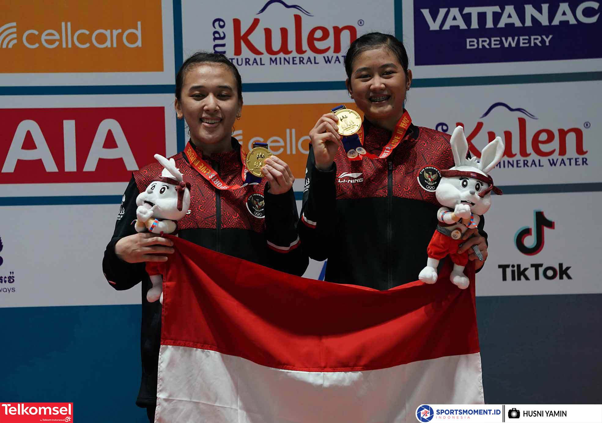 Pasangan Ganda Putri Indonesia Febrina Dwipuji Kusuma / Amalia Cahaya Pratiwi berhasil meraih medali Emas setelah pada partai puncak mengalahkan kompatriotnya, Meilysa Trias Puspitasari/Rachel Allessya Rose dua gim langsung 21-17, 21-16 pada gelaran Sea Games 2023 Kamboja di Morodok Techo National Satdium, Badminton Hall, Phnom Penh (16/5/2023) (Sportsmoment.id/Husni Yamin)
