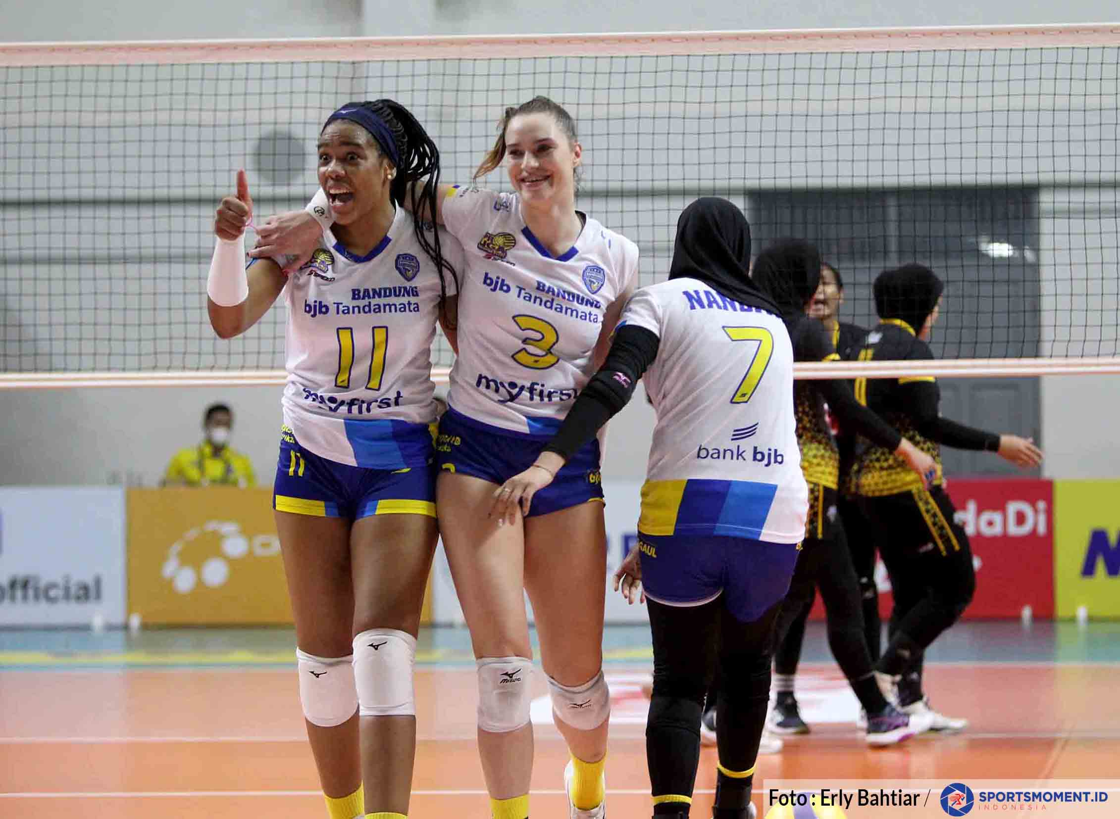 Tim putri Bandung Bank BJB Tandamata menjadi juara PLN Mobile Proliga 2022 usai mengalahkan Gresik Petrokimia Pupuk Indonesia (GPP) di GOR Padepokan Voli Jenderal Polisi Kunarto, Sentul, Bogor,  Sabtu (26/3/2022), Bandung BJB Tandamata menang dengan skor 3-1 (25-17, 25-19, 22-25, 25-18) atas GPP. (Foto : Erly Bahtiar/sportsmoment.id),,