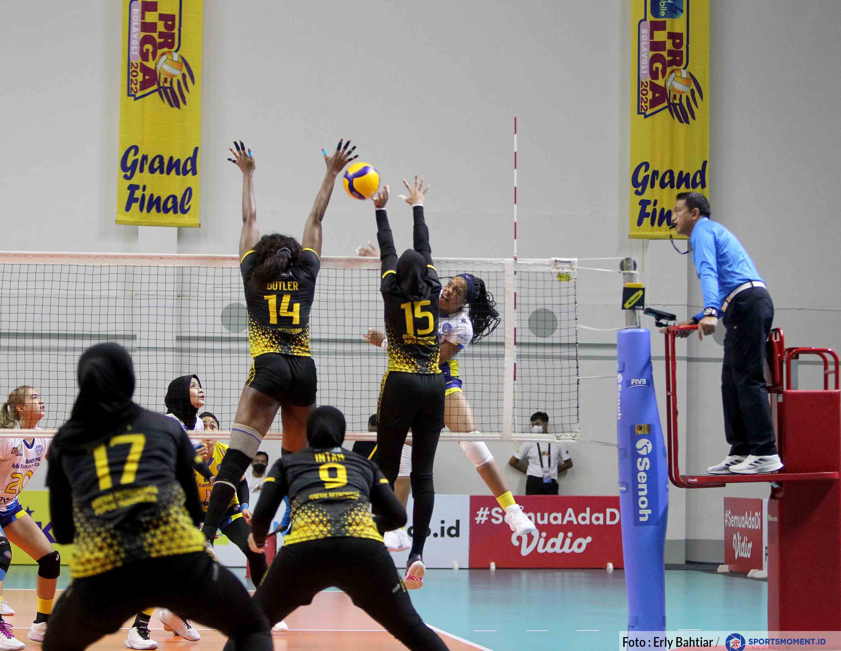 Madeline Jazmin Guillen Paredes (11) pemain bola voli putri Bandung BJB Tandamata mengarahkan pukulan smashnya ke area lawan. Tim putri Bandung BJB Tandamata menjadi juara PLN Mobile Proliga 2022 usai mengalahkan Gresik Petrokimia Pupuk Indonesia (GPP) di GOR Padepokan Voli Jenderal Polisi Kunarto, Sentul, Bogor, Sabtu (26/3/2022). Bandung BJB Tandamata menang dengan skor 3-1 (25-17, 25-19, 22-25, 25-18) atas GPP. (Foto : Erly Bahtiar/sportsmoment.id)