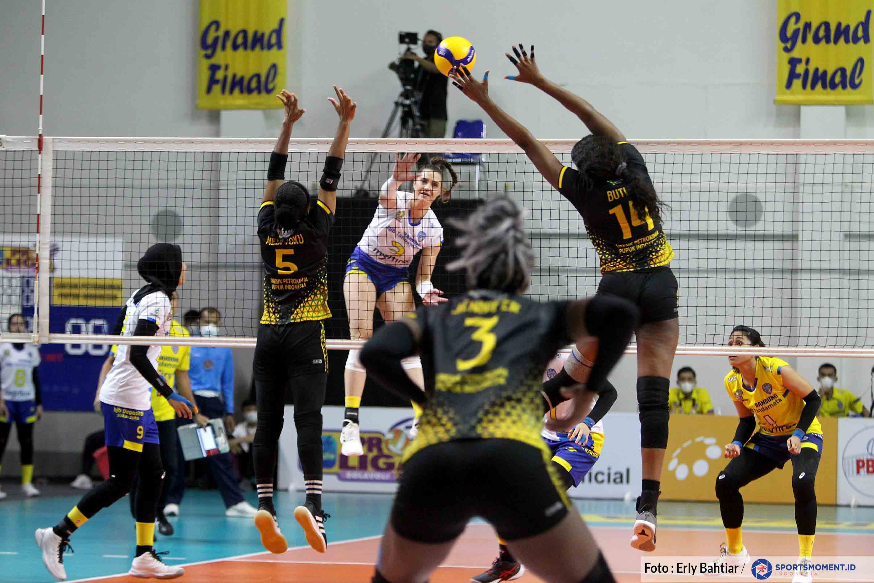 Nikoleta Perovic (3) pemain bola voli putri Bandung BJB Tandamata mengarahkan pukulan smashnya ke area lawan. Tim putri Bandung BJB Tandamata menjadi juara PLN Mobile Proliga 2022 usai mengalahkan Gresik Petrokimia Pupuk Indonesia (GPP) di GOR Padepokan Voli Jenderal Polisi Kunarto, Sentul, Bogor, Sabtu (26/3/2022). Bandung BJB Tandamata menang dengan skor 3-1 (25-17, 25-19, 22-25, 25-18) atas GPP. (Foto : Erly Bahtiar/sportsmoment.id)