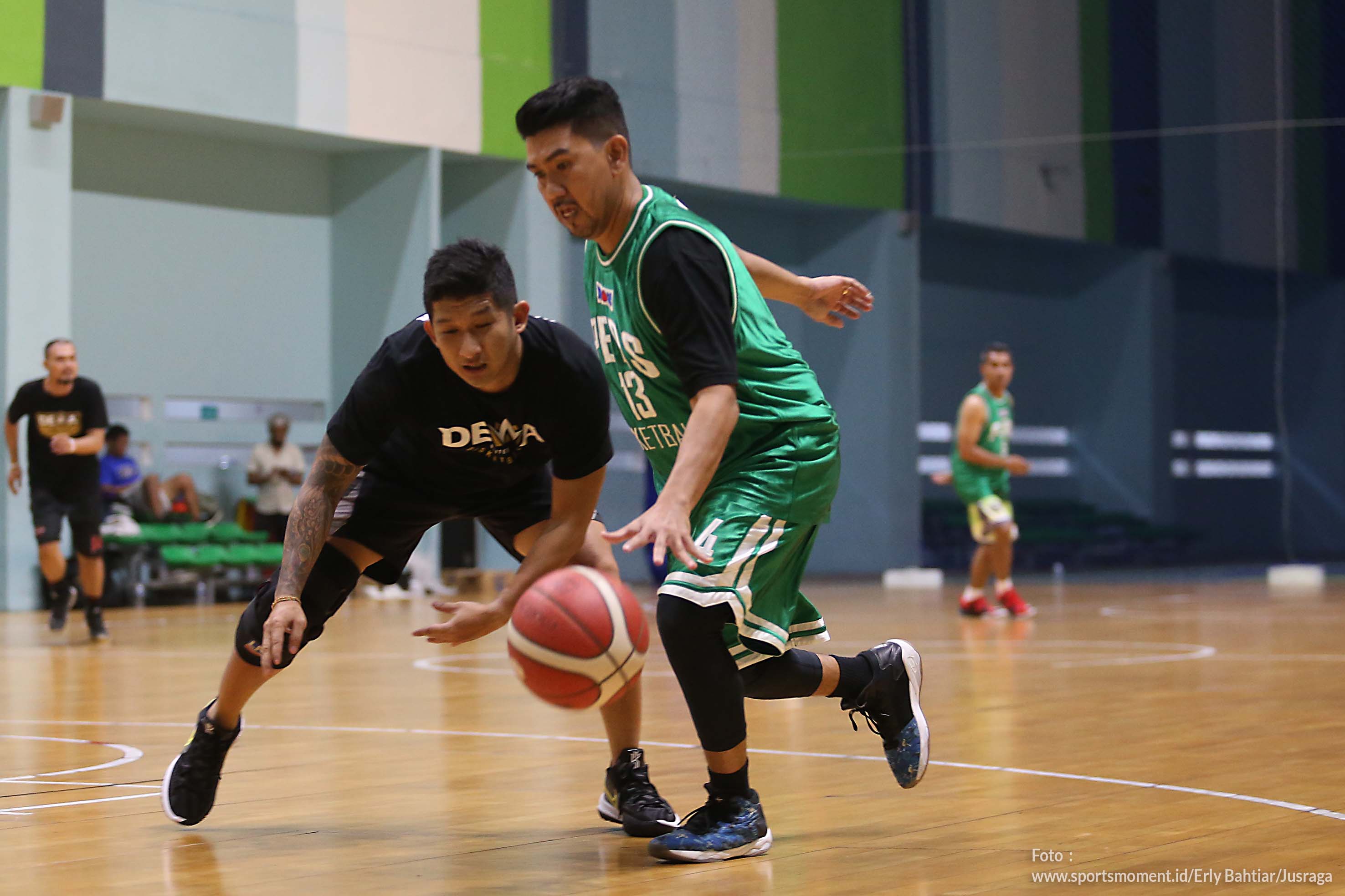Richard Insane yang bergabung dalam komunitas JUSRAGA (Jurnalis Peduli dan Suka Olahraga) beraksi di pagelaran Dewa United Surabaya Fun Games bersama awak media di GBK Arena, Jumat (17/12) sore. Acara main basket bareng ini menjadi momen silaturahmi jelang bergulurnya IBL 2022 yang direncanakan mulai pada 15 Januari di Hall Basket Senayan, Jakarta.