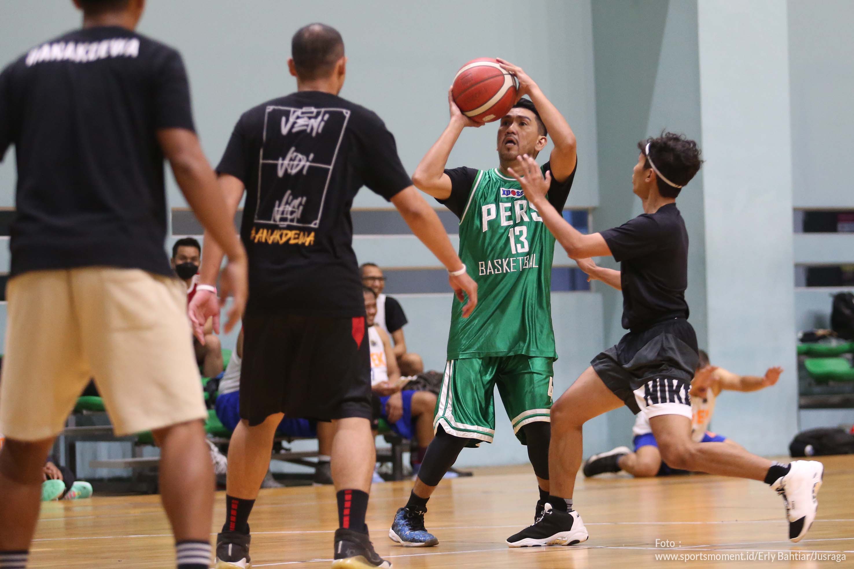 Richard Insane yang bergabung dalam komunitas JUSRAGA (Jurnalis Peduli dan Suka Olahraga) beraksi di pagelaran Dewa United Surabaya Fun Games bersama awak media di GBK Arena, Jumat (17/12) sore. Acara main basket bareng ini menjadi momen silaturahmi jelang bergulurnya IBL 2022 yang direncanakan mulai pada 15 Januari di Hall Basket Senayan, Jakarta. Photo : Erly Bahtiar