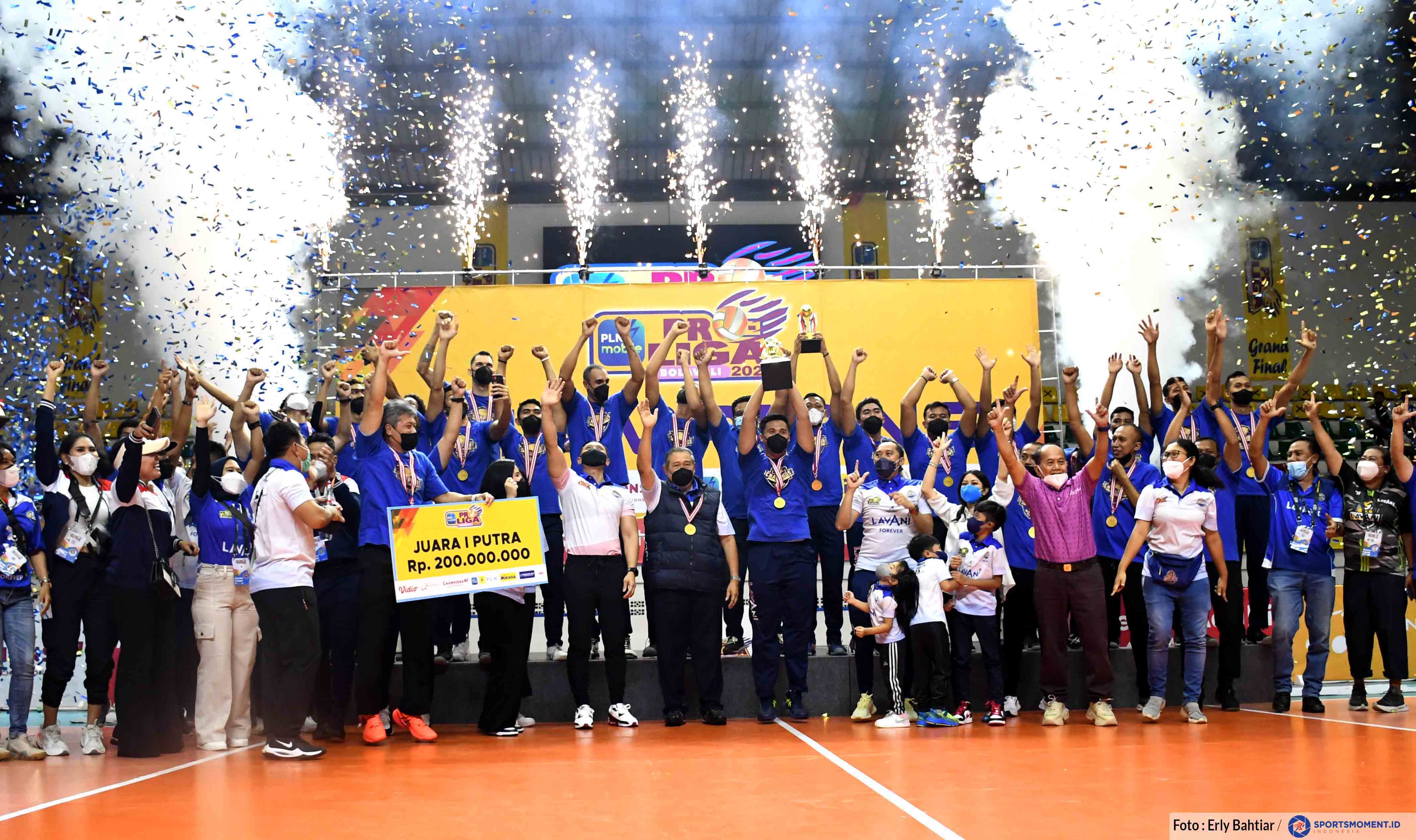 Bogor Lavani keluar sebagai juara setelah pada pertandingan yang digelar di Padepokan Voli Jenderal Kunarto, Sentul, Bogor, Minggu (27/3/2022), tersebut, Lavani menang dalam pertandingan ketat. Tim asuhan pelatih asal Tiongkok Jeff Jiang tersebut menang 3-2 (25-27, 25-19, 20-25, 25-18, 15-10). (Foto : Erly Bahtiar/sportsmoment.id)