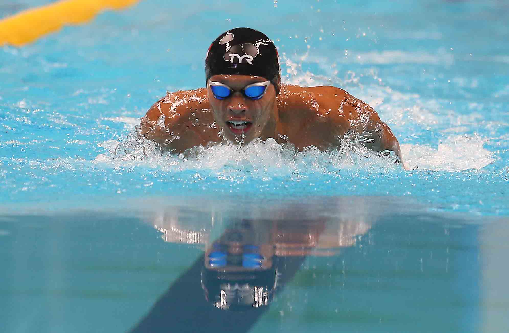 Perenang Indonesia Reza Bayu Prasetyo saat berlomba gaya kupu-kupu dalam Time Trial persiapan Tim Nasional Renang Indonesia menuju SEA Games 2022 Vietnam di Stadion Akuatik Gelora Bung Karno Jakarta, 22 April 2022 (Photo: Erly Bahtiar/Sportsmoment.id)