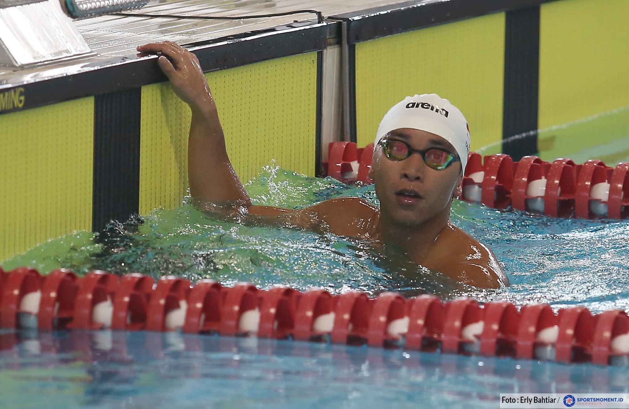 Perenang Indonesia, Farrel Armandio Tangkasi saat berlomba dalam event "Time Trial" persiapan Tim Nasional Renang Indonesia menuju SEA Games 2022 Vietnam di Stadion Akuatik Gelora Bung Karno Jakarta, Sabtu, 23 April 2022 (Photo: Erly Bahtiar/Sportsmoment.id)