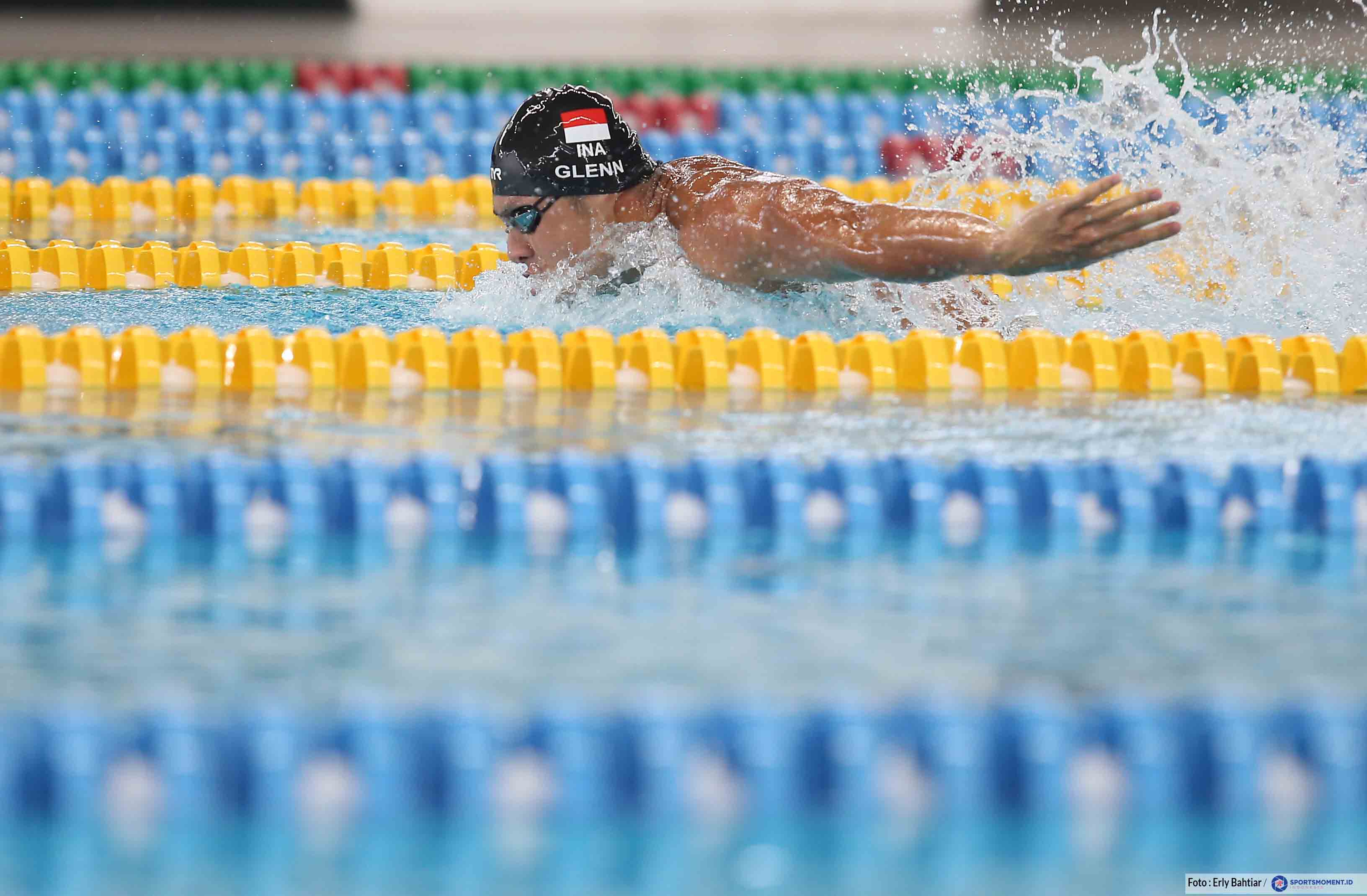 Perenang Indonesia, Glenn Victor Sutanto saat berlomba dalam event "Time Trial" persiapan Tim Nasional Renang Indonesia menuju SEA Games 2022 Vietnam di Stadion Akuatik Gelora Bung Karno Jakarta, Sabtu, 23 April 2022 (Photo: Erly Bahtiar/Sportsmoment.id)