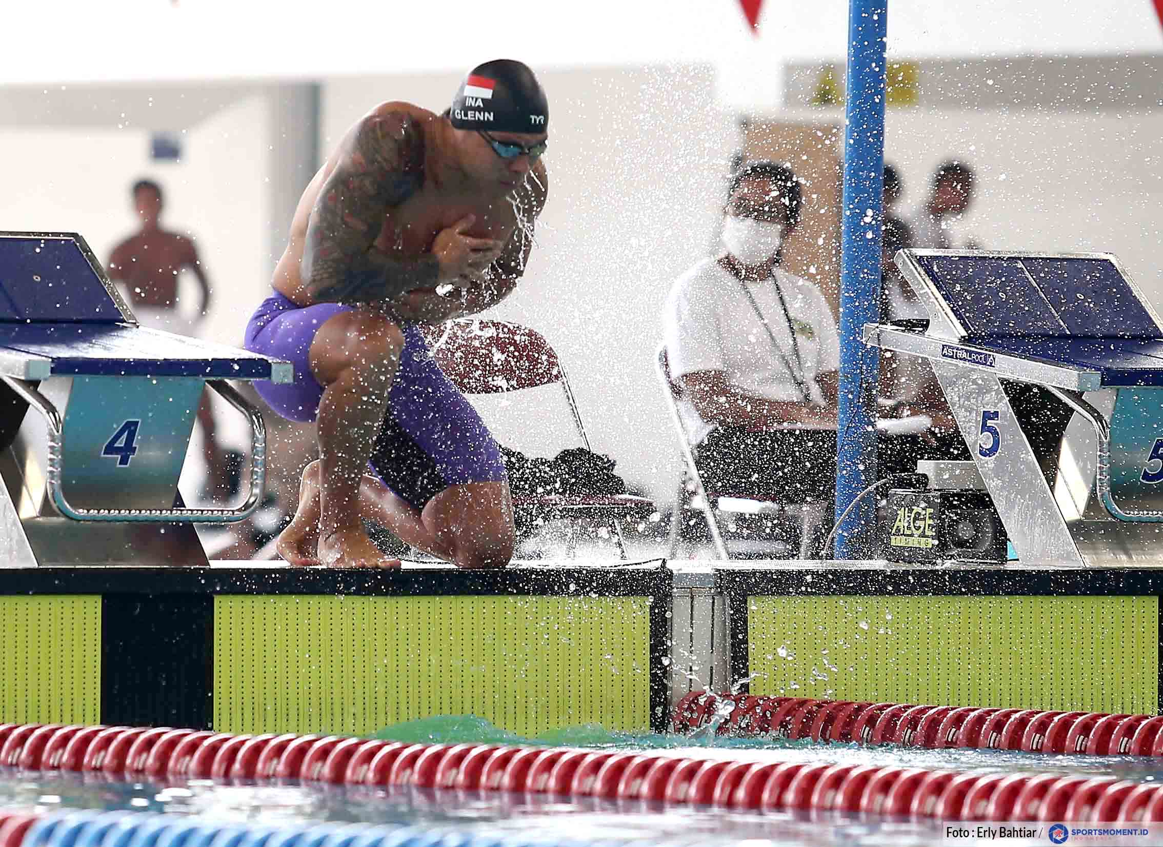 Perenang Indonesia, Glenn Victor Sutanto saat berlomba dalam event "Time Trial" persiapan Tim Nasional Renang Indonesia menuju SEA Games 2022 Vietnam di Stadion Akuatik Gelora Bung Karno Jakarta, Sabtu, 23 April 2022 (Photo: Erly Bahtiar/Sportsmoment.id)