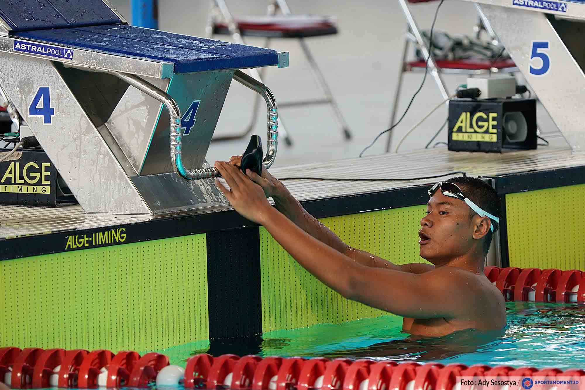 Perenang Indonesia JOE ADITYA W KURNIAWAN berhasil menjadi yang tercepat dengan catatan waktu 1 menit 50,80 detik pada final 200 meter gaya bebas putra National Time Trial di Stadion Akuatik Gelora Bung Karno, Sabtu (23/04/2022). Ajang ini digelar sebagai persiapan akhir menjelang SEA Games 2022 Vietnam. (Photo : Ady Sesotya/Sportsmoment.id)