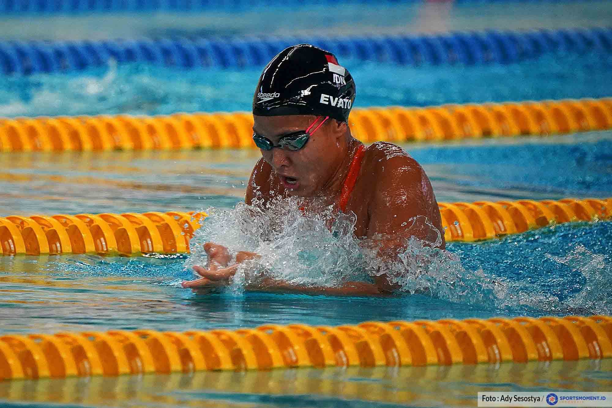 Perenang Indonesia ANANDIA TRECIEL VANESSAE EVATO berhasil menjadi yang tercepat dengan catatan waktu 1 menit 13,20 detik pada final 100 meter gaya dada putri National Time Trial di Stadion Akuatik Gelora Bung Karno, Sabtu (23/04/2022). Ajang ini digelar sebagai persiapan akhir menjelang SEA Games 2022 Vietnam. (Photo : Ady Sesotya/Sportsmoment.id).