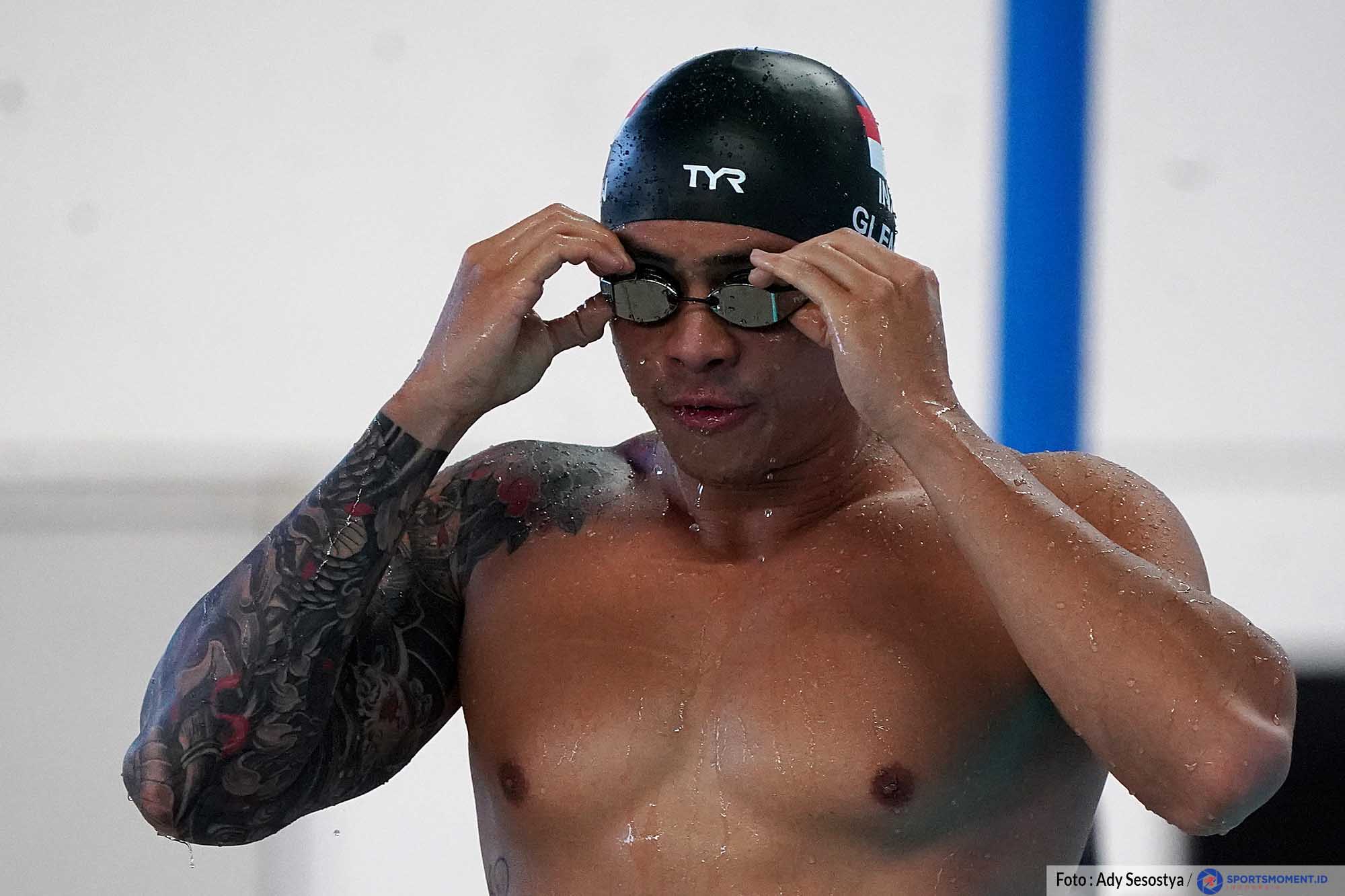 Perenang Indonesia GLENN VICTOR SUTANTO berhasil menjadi yang tercepat dengan catatan waktu 53,36 detik pada final 100 meter gaya kupu-kupu putra National Time Trial di Stadion Akuatik Gelora Bung Karno, Sabtu (23/04/2022). Ajang ini digelar sebagai persiapan akhir menjelang SEA Games 2022 Vietnam. (Photo : Ady Sesotya/Sportsmoment.id)