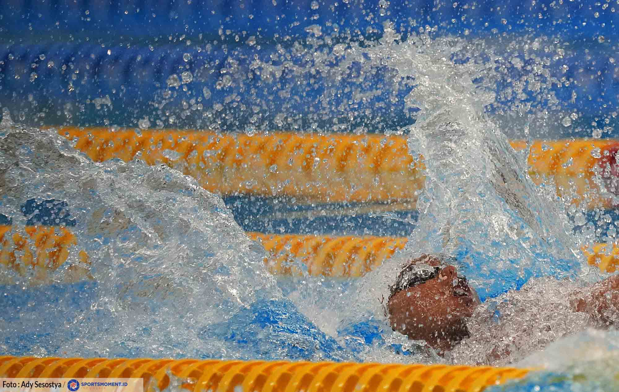 Perenang Indonesia I GEDE SIMAN SUDARTAWA berhasil menjadi yang tercepat dengan catatan waktu 25,96 detik pada final 50 meter gaya punggung putra National Time Trial di Stadion Akuatik Gelora Bung Karno, Sabtu (23/04/2022). Ajang ini digelar sebagai persiapan akhir menjelang SEA Games 2022 Vietnam. (Photo : Ady Sesotya/Sportsmoment.id) .