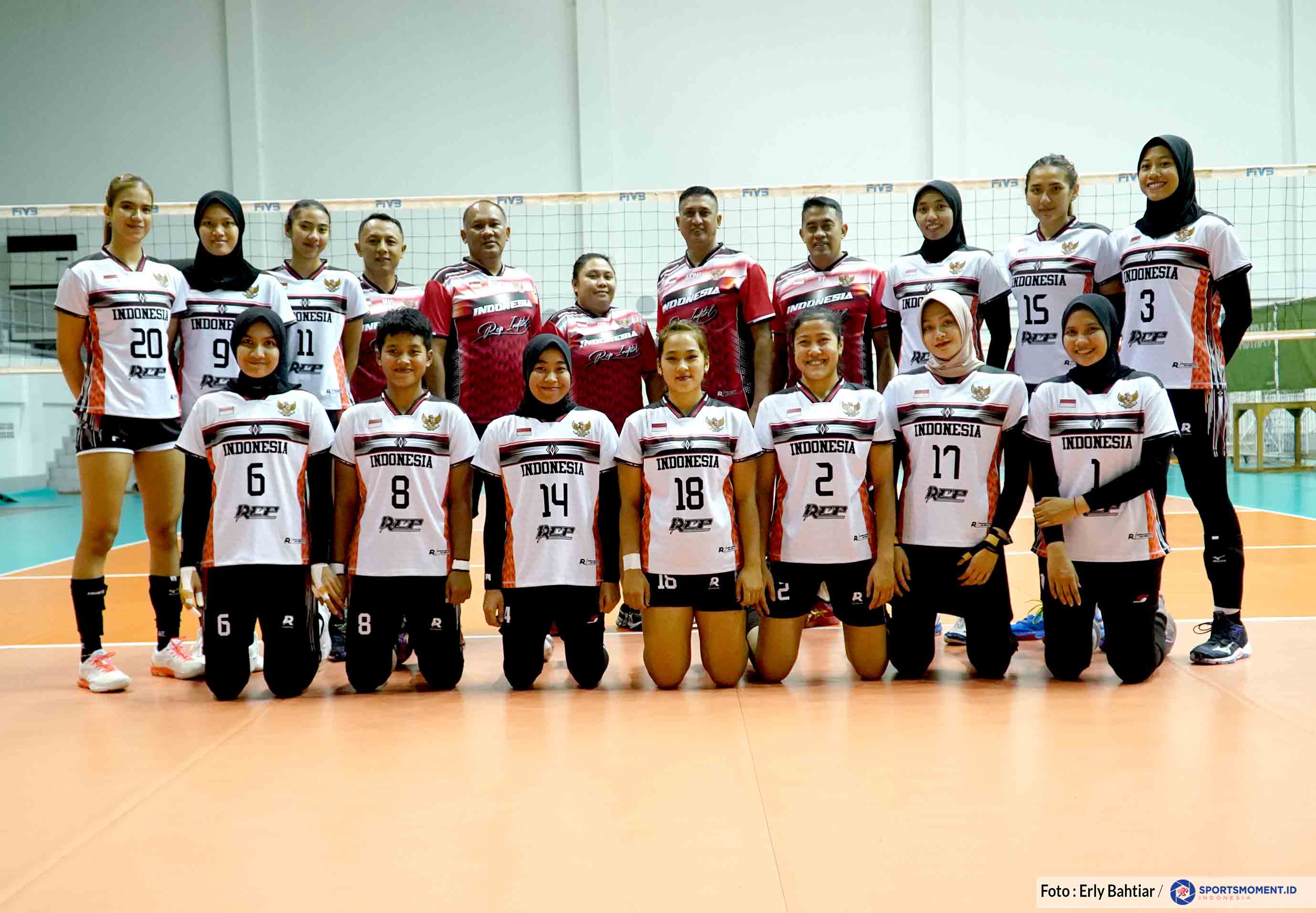 Tim Bola Voli Putri Indonesia untuk SEA Games 2022 Vietnam melakukan foto bersama di Padepokan Bola Voli di Sentul, Bogor pada Senin 25 April 2022 (Photo: Erly Bahtiar/Sportsmoment.id)