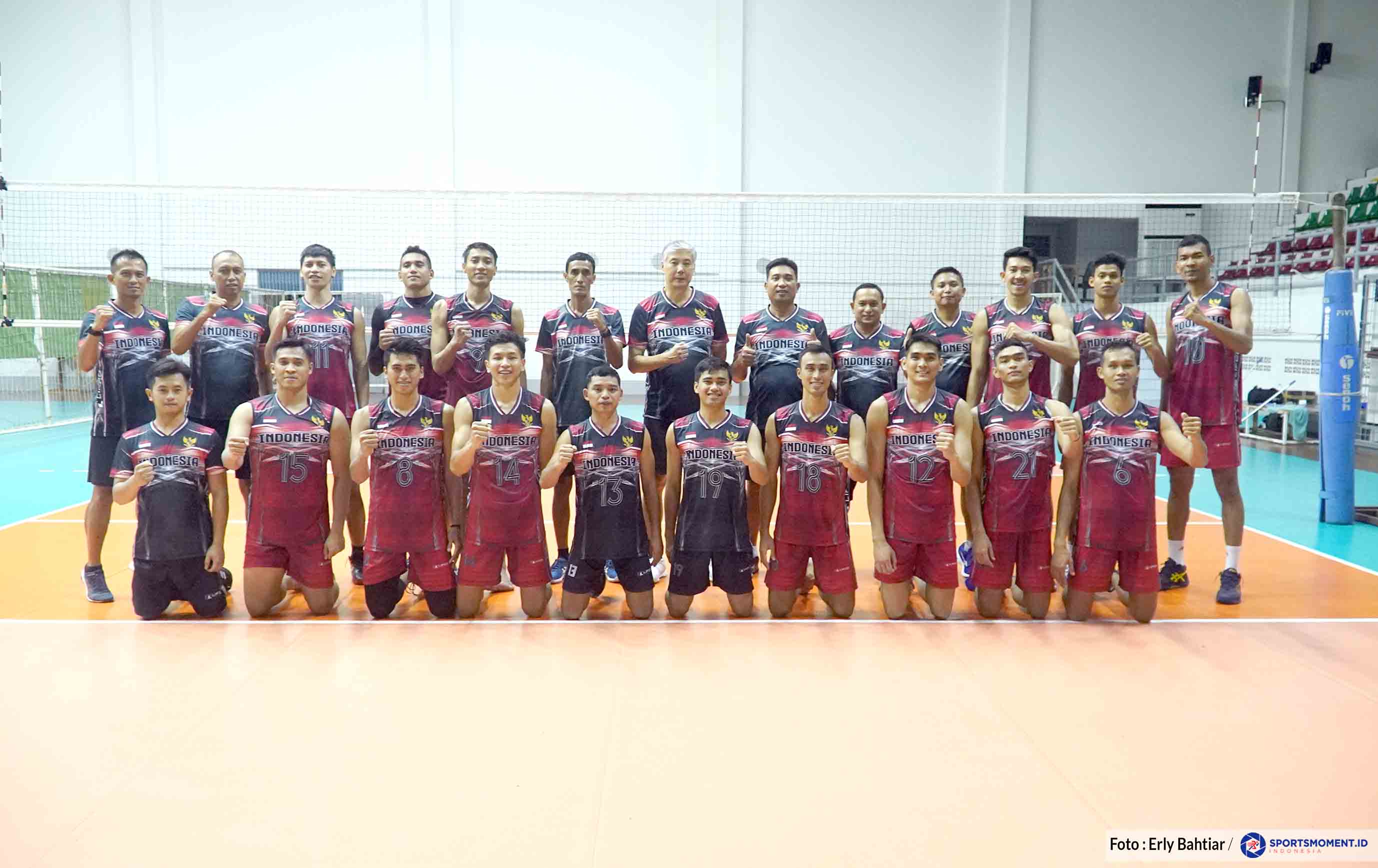 Tim Bola Voli Putra Indonesia untuk SEA Games 2022 Vietnam melakukan foto bersama di Padepokan Bola Voli di Sentul, Bogor pada Senin 25 April 2022 (Photo: Erly Bahtiar/Sportsmoment.id)