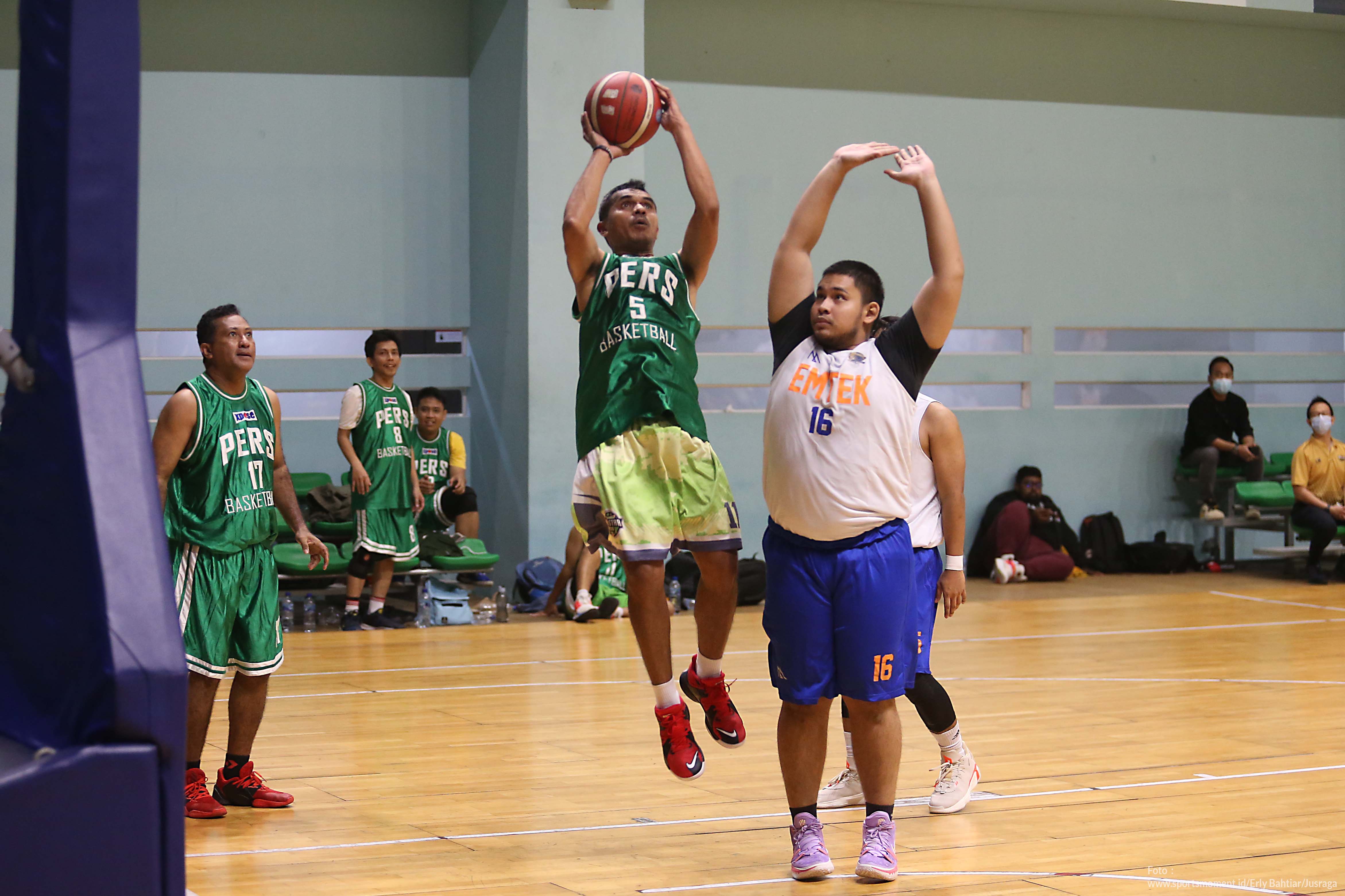 Eky Reuwpassa jurnalis TVRI yang bergabung dalam JUSRAGA (Jurnalis Peduli dan Suka Olahraga) beraksi di pagelaran Dewa United Surabaya Fun Games bersama awak media di GBK Arena, Jumat (17/12) sore. Acara main basket bareng ini menjadi momen silaturahmi jelang bergulurnya IBL 2022 yang direncanakan mulai pada 15 Januari di Hall Basket Senayan, Jakarta. Photo : Erly Bahtiar