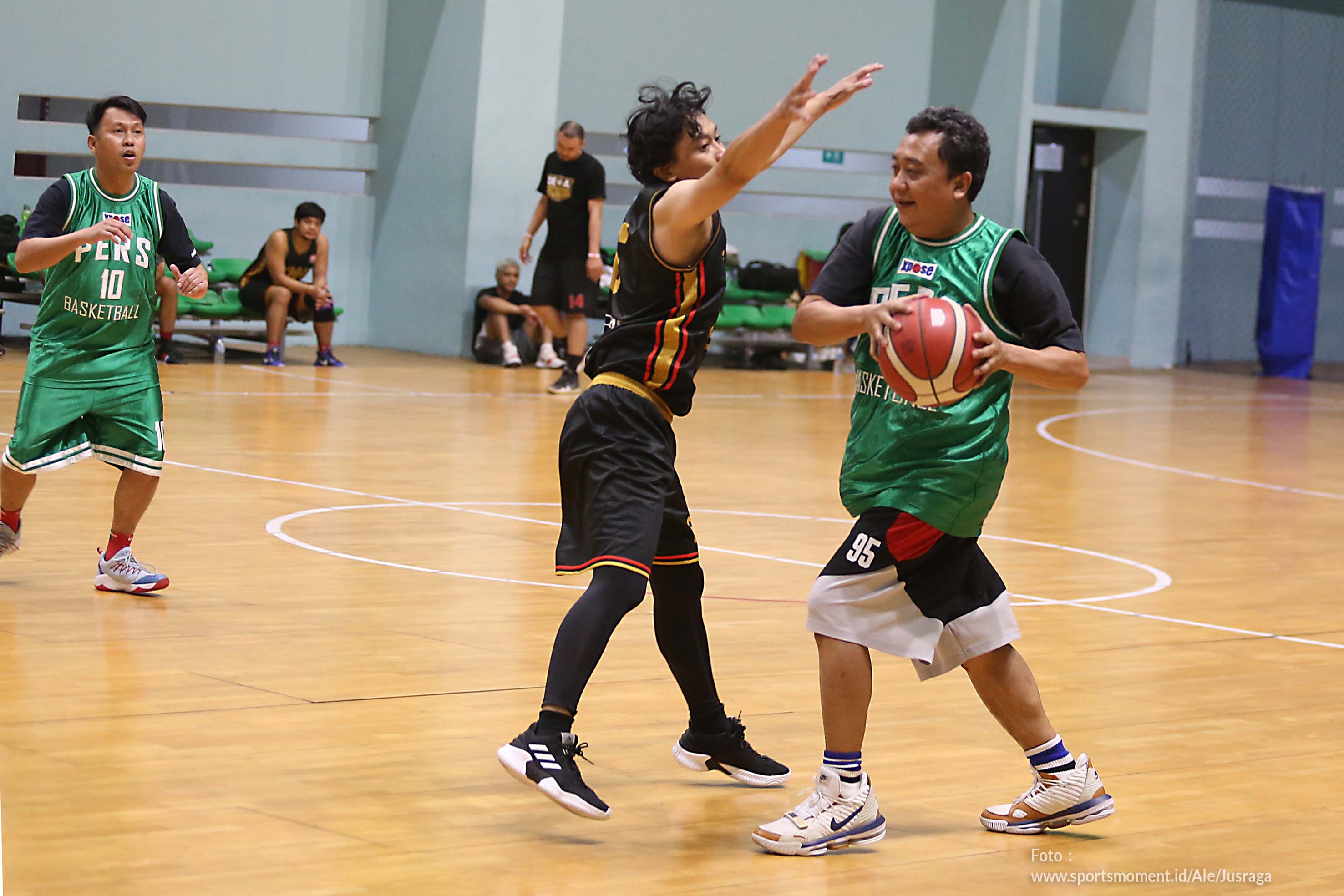 Erly Bahtiar, pewarta foto sportsmoment.id yang bergabung dalam komunitas JUSRAGA (Jurnalis Peduli dan Suka Olahraga) beraksi di pagelaran Dewa United Surabaya Fun Games bersama awak media di GBK Arena, Jumat (17/12) sore. Acara main basket bareng ini menjadi momen silaturahmi jelang bergulurnya IBL 2022 yang direncanakan mulai pada 15 Januari di Hall Basket Senayan, Jakarta.