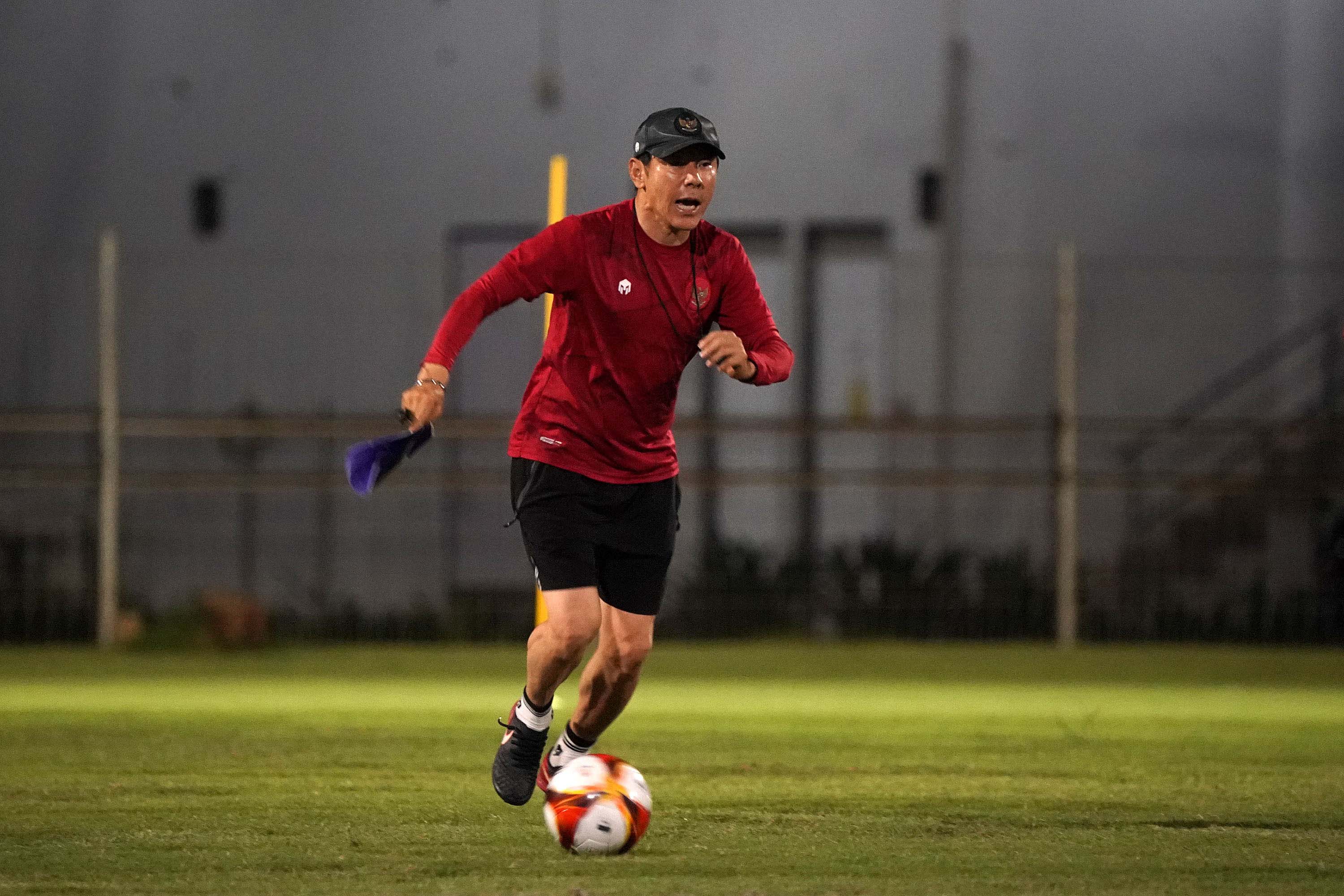 Pelatih Tim Nasional U-23 Indonesia, Shn Taeyong saat memimpin latihan terakhir di Lapangan B Komplek Gelora Bung Karno, Minggu (1/5/2022) jelang berlaga di ajang SEA Games XXXI Vietnam. (Foto : Ady Sesotya/Sportsmoment.id)