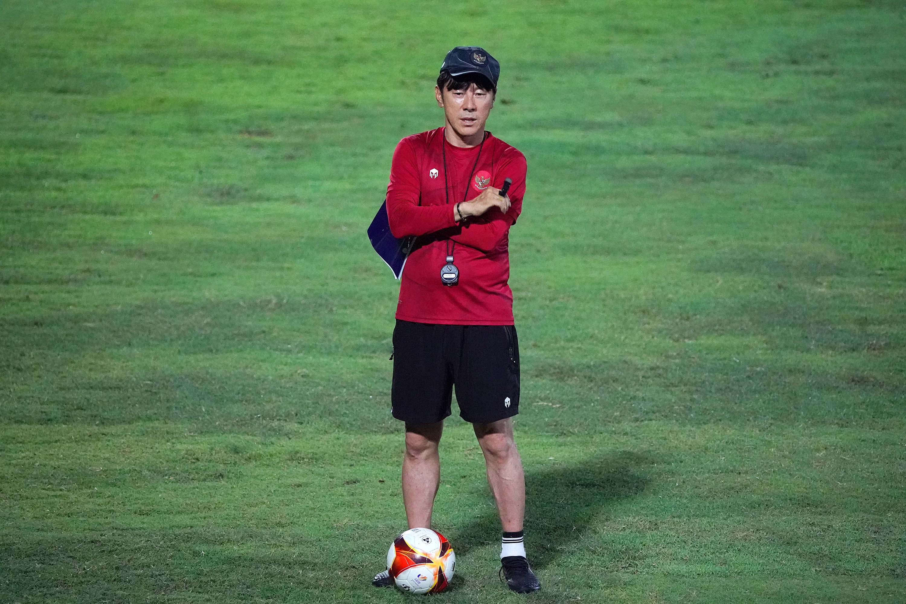 Pelatih Tim Nasional U-23 Indonesia, Shn Taeyong saat memimpin latihan terakhir di Lapangan B Komplek Gelora Bung Karno, Minggu (1/5/2022) jelang berlaga di ajang SEA Games XXXI Vietnam. (Foto : Ady Sesotya/Sportsmoment.id)