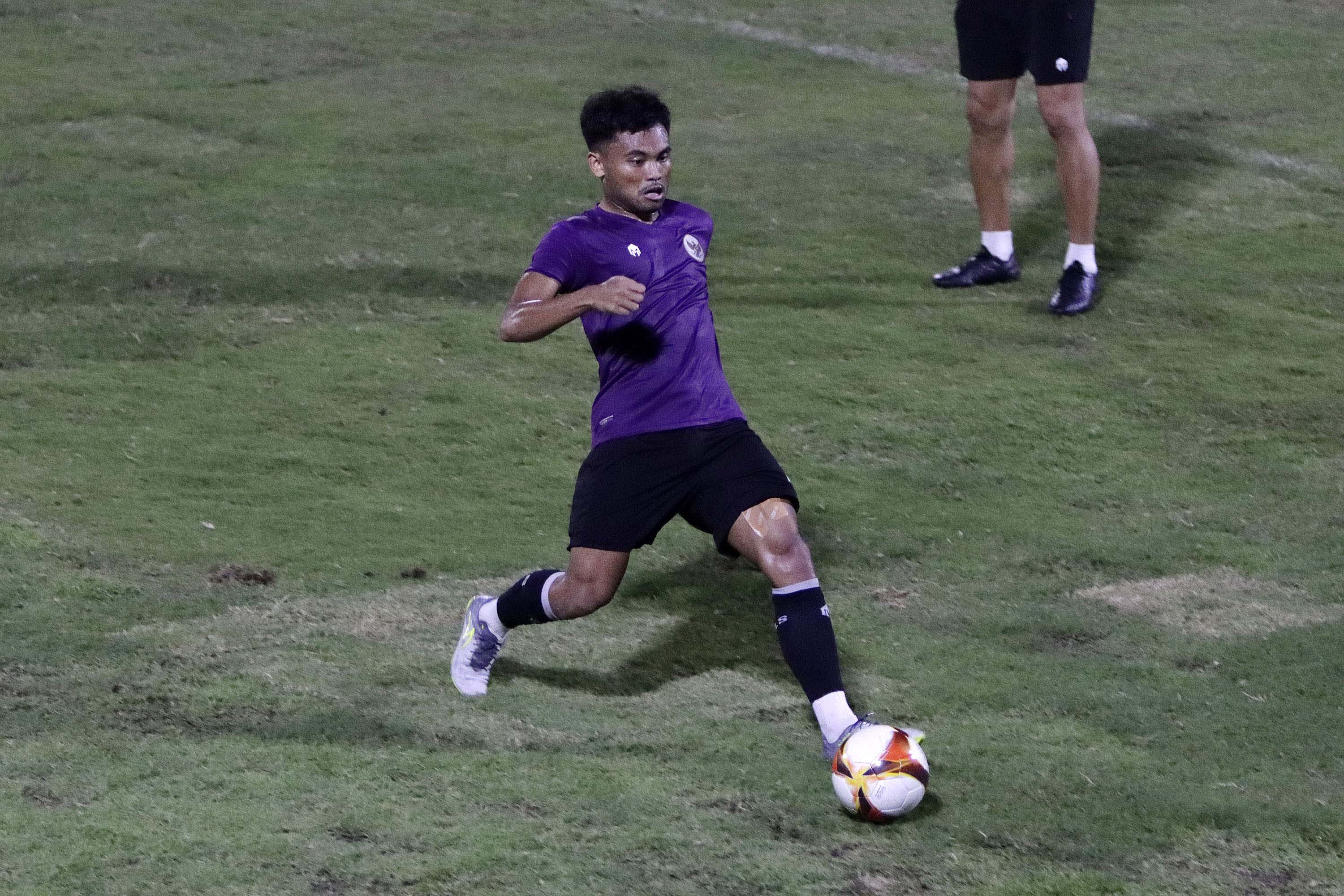 Pemain Tim Nasional U-23 Indonesia, Saddil Ramdani saat menjalani latihan terakhir di Lapangan B Komplek Gelora Bung Karno, Minggu (1/5/2022) jelang berlaga di ajang SEA Games XXXI Vietnam. (Foto : Ady Sesotya/Sportsmoment.id)