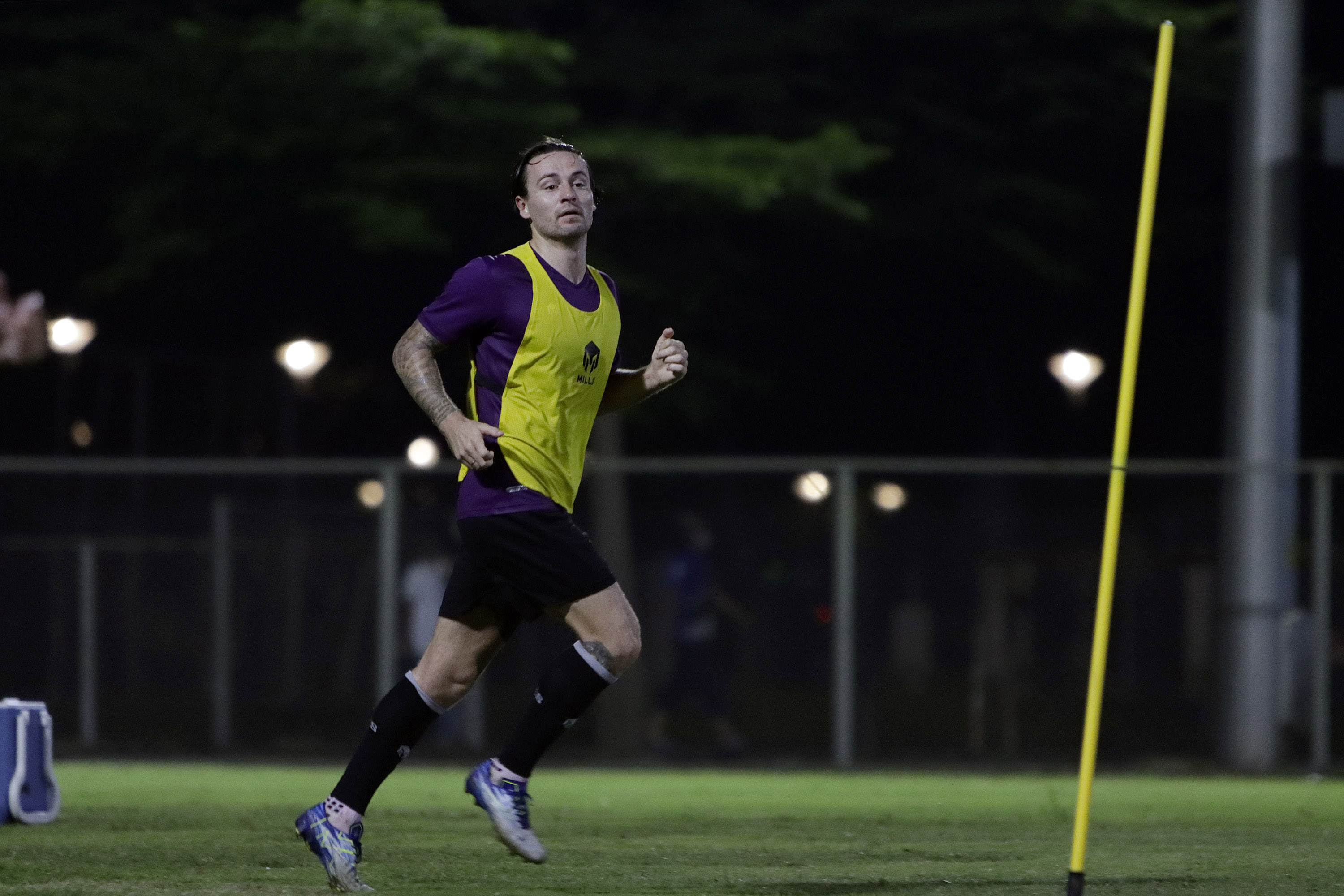 Pemain Tim Nasional U-23 Indonesia, Marc Klok saat menjalani latihan terakhir di Lapangan B Komplek Gelora Bung Karno, Minggu (1/5/2022) jelang berlaga di ajang SEA Games XXXI Vietnam. (Foto : Ady Sesotya/Sportsmoment.id)