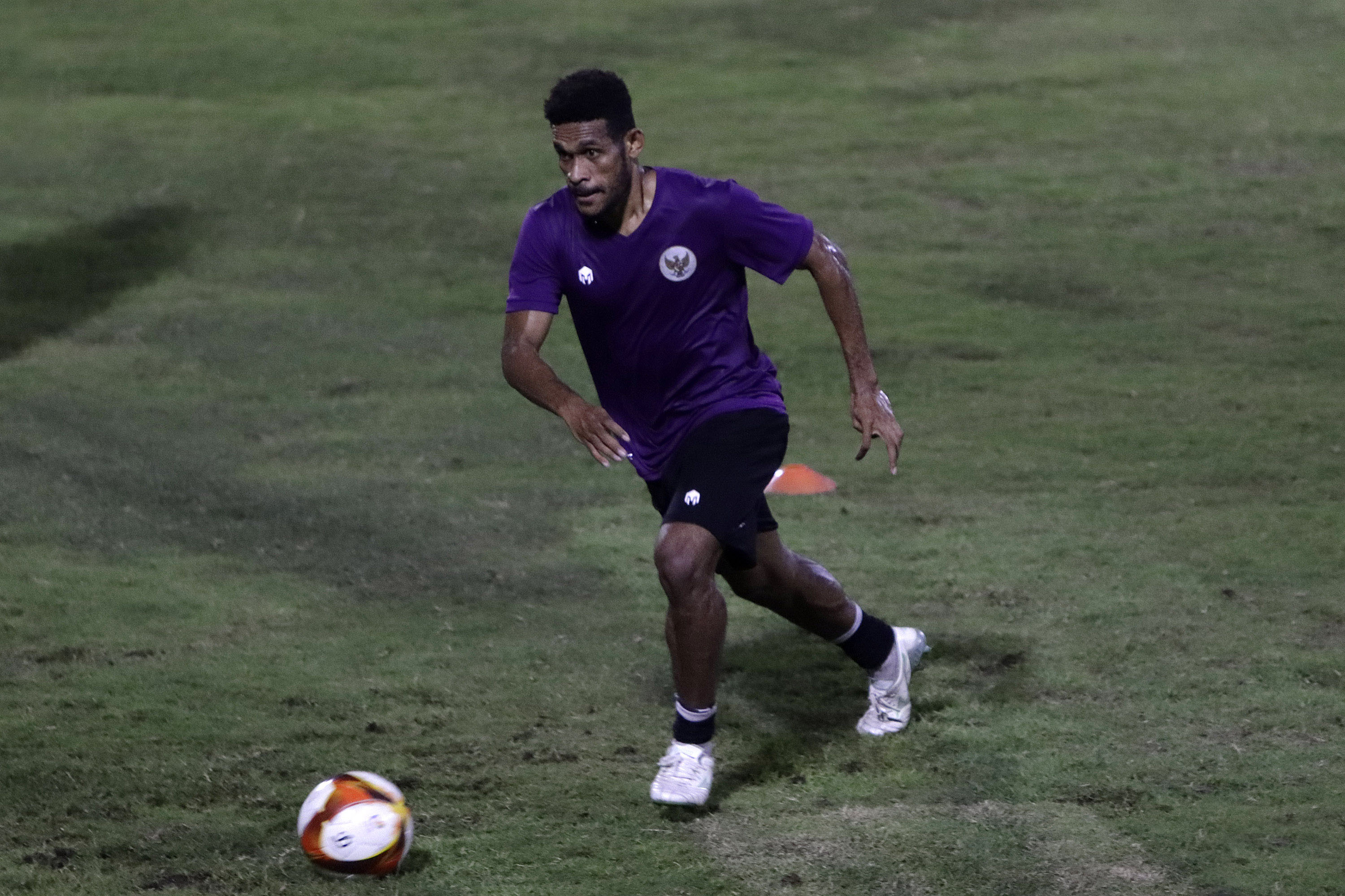 Pemain Tim Nasional U-23 Indonesia, Ricky Kambuaya saat menjalani latihan terakhir di Lapangan B Komplek Gelora Bung Karno, Minggu (1/5/2022) jelang berlaga di ajang SEA Games XXXI Vietnam. (Foto : Ady Sesotya/Sportsmoment.id)