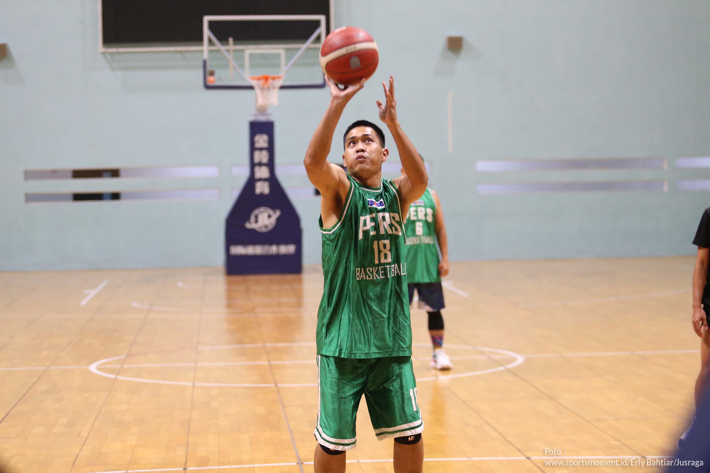 Hardat, Jurnalis Tvone yang bergabung dalam komunitas JUSRAGA (Jurnalis Peduli dan Suka Olahraga) beraksi di pagelaran Dewa United Surabaya Fun Games bersama awak media di GBK Arena, Jumat (17/12) sore. Acara main basket bareng ini menjadi momen silaturahmi jelang bergulurnya IBL 2022 yang direncanakan mulai pada 15 Januari di Hall Basket Senayan, Jakarta.