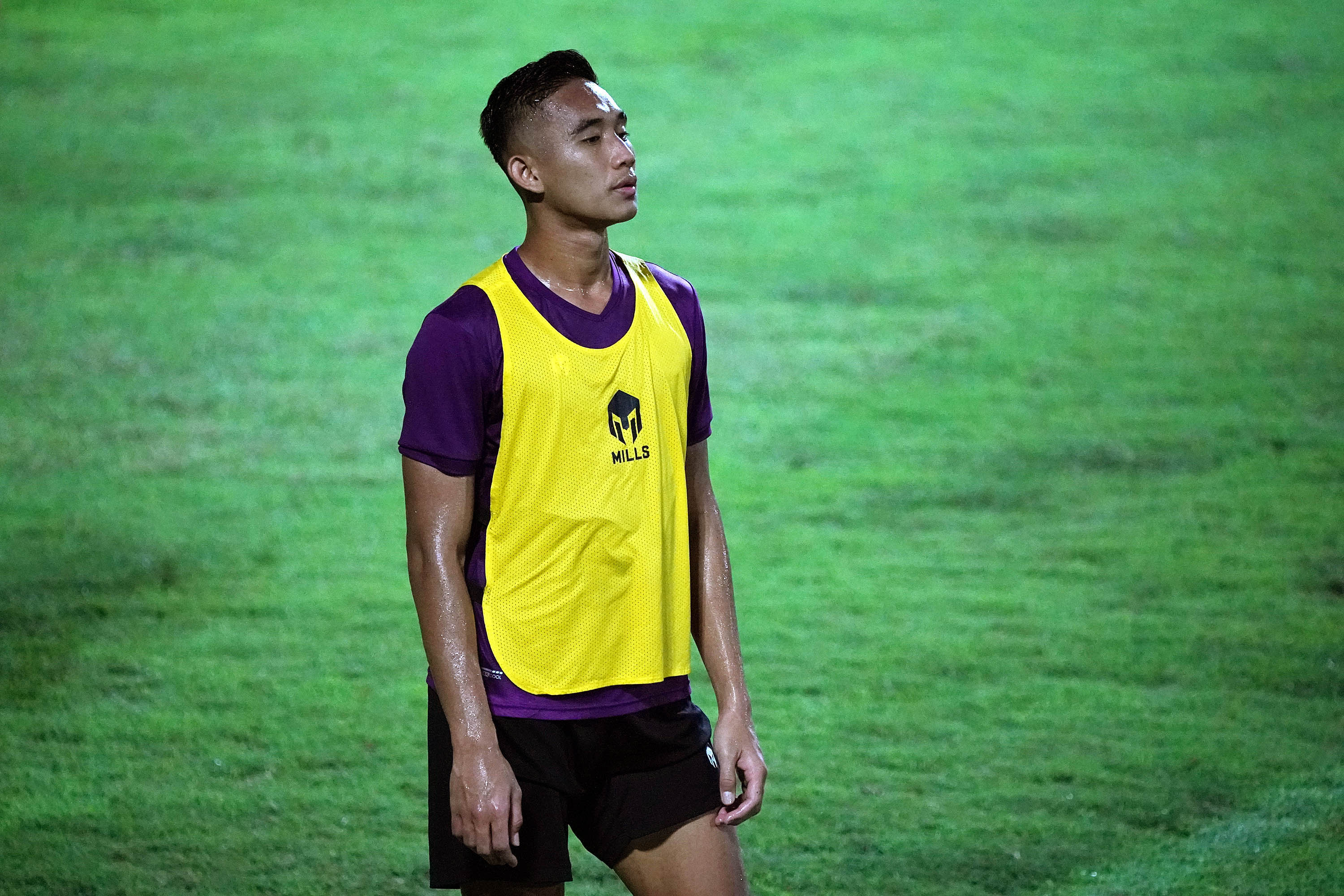 Pemain Tim Nasional U-23 Indonesia, Rizky Ridho saat menjalani latihan terakhir di Lapangan B Komplek Gelora Bung Karno, Minggu (1/5/2022) jelang berlaga di ajang SEA Games XXXI Vietnam. (Foto : Ady Sesotya/Sportsmoment.id)