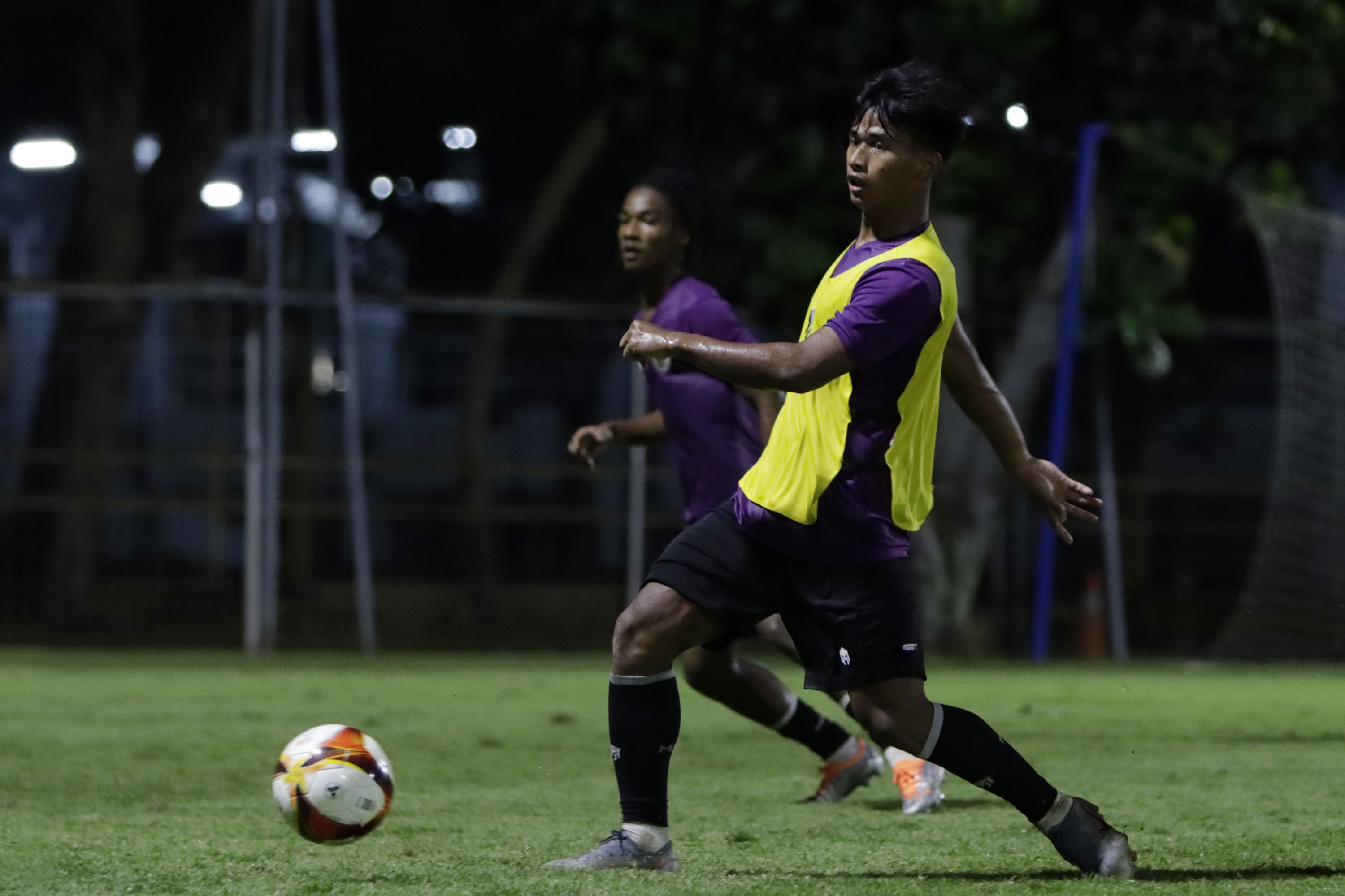 Pemain Tim Nasional U-23 Indonesia, Irfan Jauhari saat menjalani latihan terakhir di Lapangan B Komplek Gelora Bung Karno, Minggu (1/5/2022) jelang berlaga di ajang SEA Games XXXI Vietnam. (Foto : Ady Sesotya/Sportsmoment.id)
