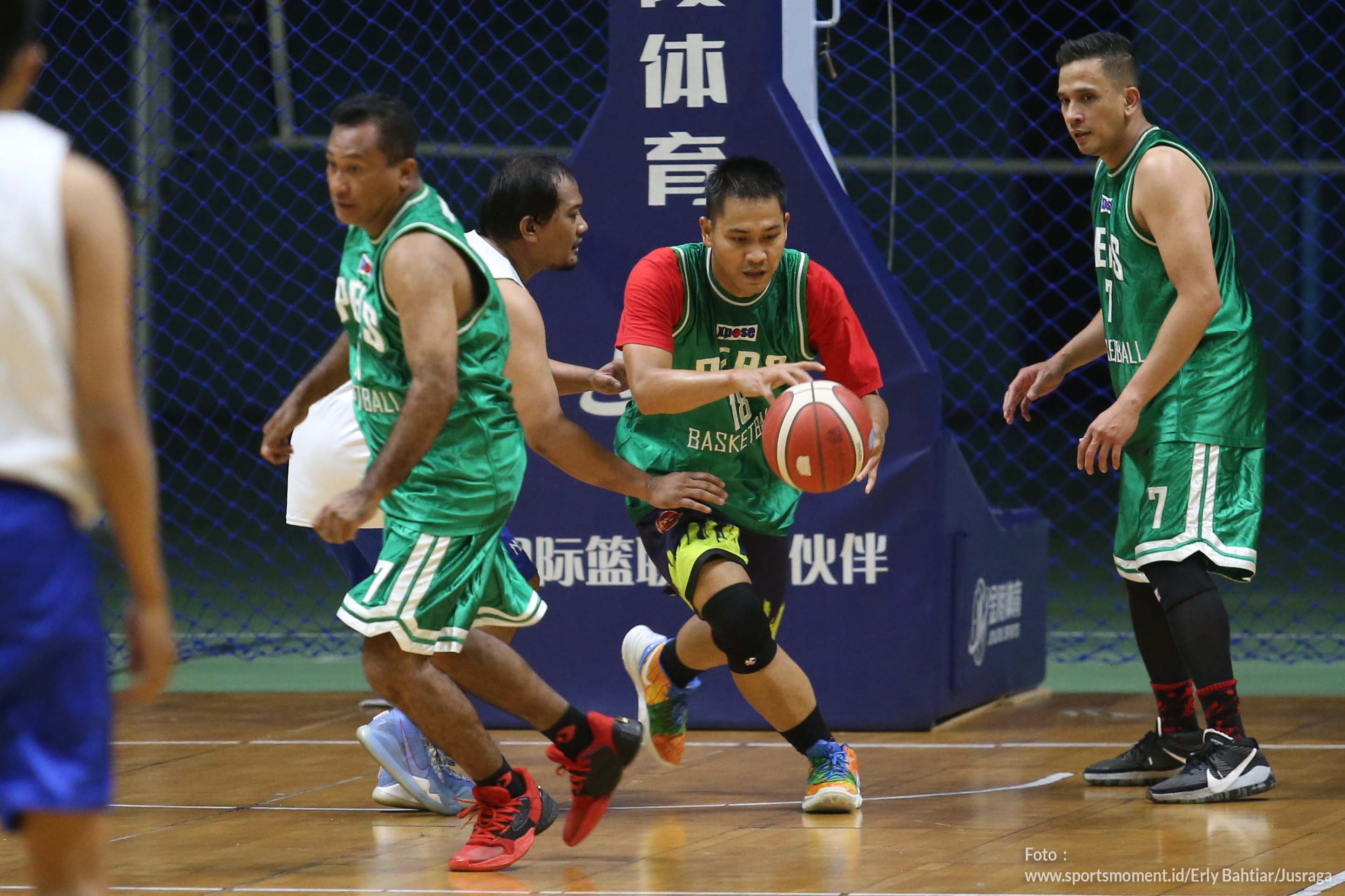 Hardat, Jurnalis Tvone yang bergabung dalam komunitas JUSRAGA (Jurnalis Peduli dan Suka Olahraga) beraksi di pagelaran Dewa United Surabaya Fun Games bersama awak media di GBK Arena, Jumat (17/12) sore. Acara main basket bareng ini menjadi momen silaturahmi jelang bergulurnya IBL 2022 yang direncanakan mulai pada 15 Januari di Hall Basket Senayan, Jakarta.