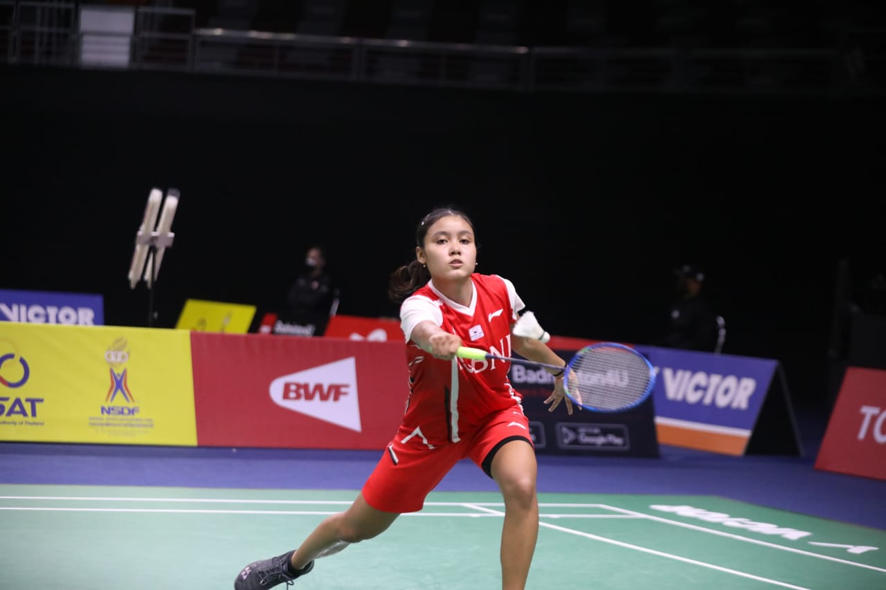 Pemain tunggal putri Indonesia, Bilqis Prasista berhasil menaklukan tunggal putri nomor satu dunia asal Jepang, Akane Yamaguchi pada laga terakhir penyisihan Grup A perebutan Piala Uber 2022 di Impact Arena, Bangkok, Rabu (11/5). (HO : Humas PP PBSI/sportsmoment.id)