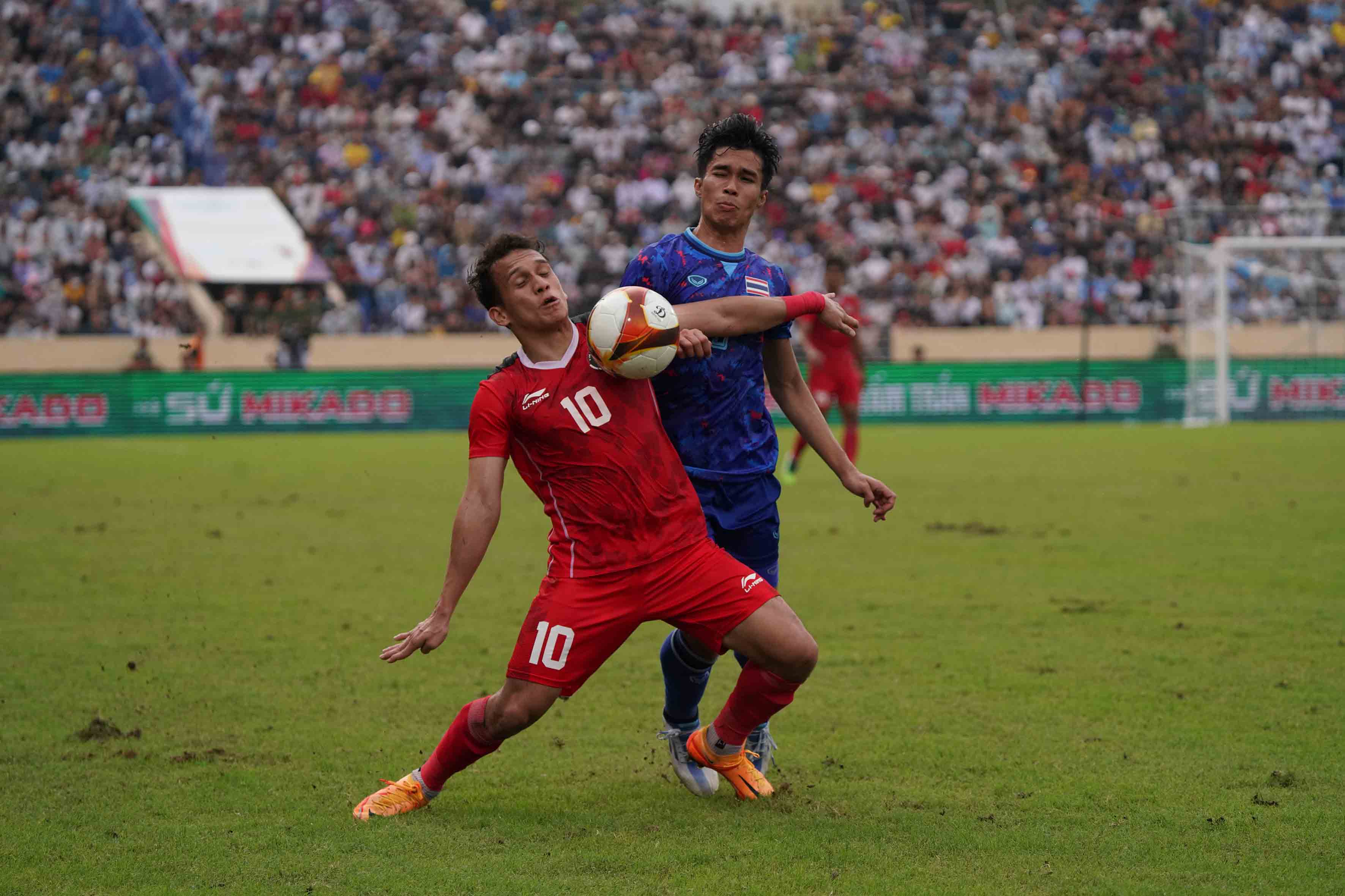 Egy Maulana Vikri (10) dalam pertandingan semifinal. Timnas Indonesia U-23 gagal ke final SEA Games 2021 usai kalah 0-1 dari Thailand U-23 pada semifinal cabang olahraga sepakbola di stadion Thien Truong, Nam Dinh, Vietnam, Kamis, 19 Mei 2022 (Photo : HO/Kemenpora/PP SIWO PWI/Erly Bahtiar/sportsmoment.id)