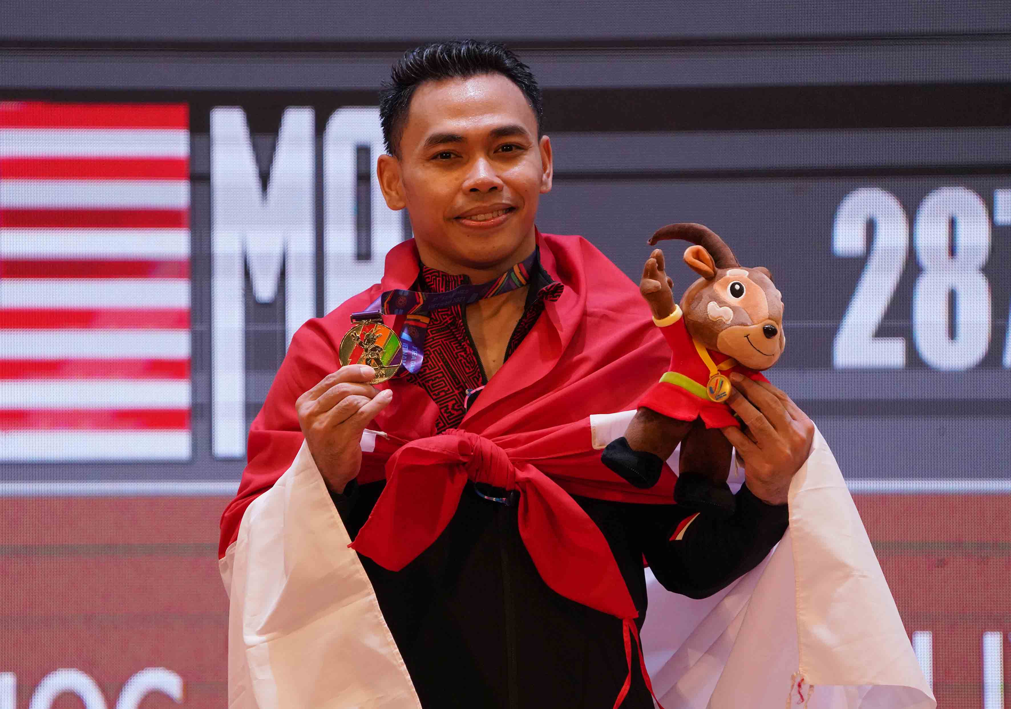 Lifter Indonesia Eko Yuli Irawan berhasil meraih medali emas pada final angkat besi nomor 61 kg putra angkatan clean and jerk pada SEA Games 2021 Vietnam di Hanoi Sports Training and Competition Center, Hanoi, Vietnam, Jumat 20 Mei 2022 (Photo : HO/Kemenpora/PP SIWO PWI/Erly Bahtiar/sportsmoment.id)