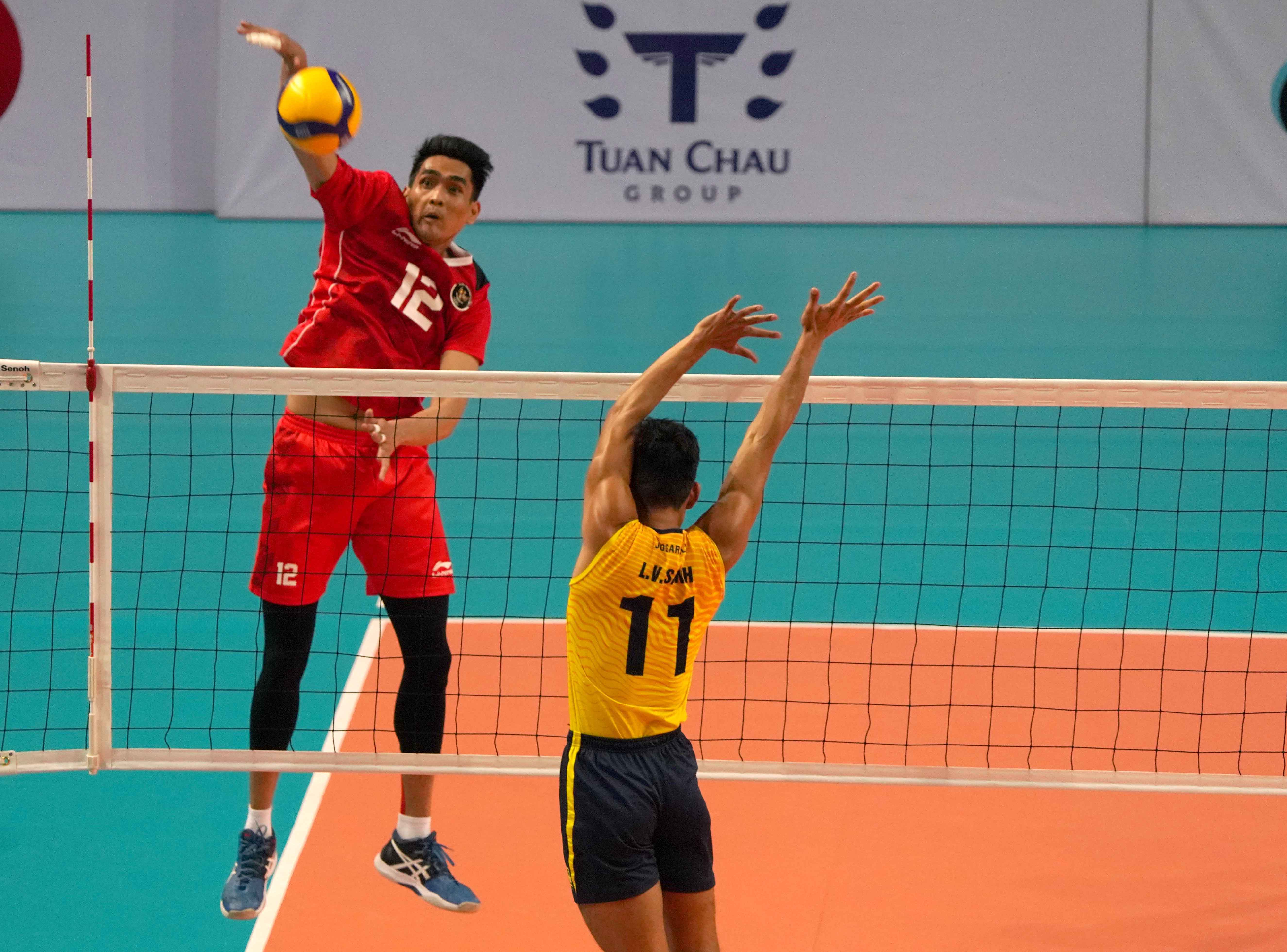 Pemain timnas Indonesia, Rivan Nur Mulki (12) mengarahkan pukulan smashnya ke area lawan. Timnas bola voli putra Indonesia berhasil mempertahankan gelar juara di SEA Games 2021 dengan mengalahkan Vietnam dengan skor 3-0 di Dai Yan Sports Arena, Quang Ninh Vietnam, Minggu, 22 Mei 2022 (Photo : HO/Kemenpora/PP SIWO PWI/Erly Bahtiar/sportsmoment.id)