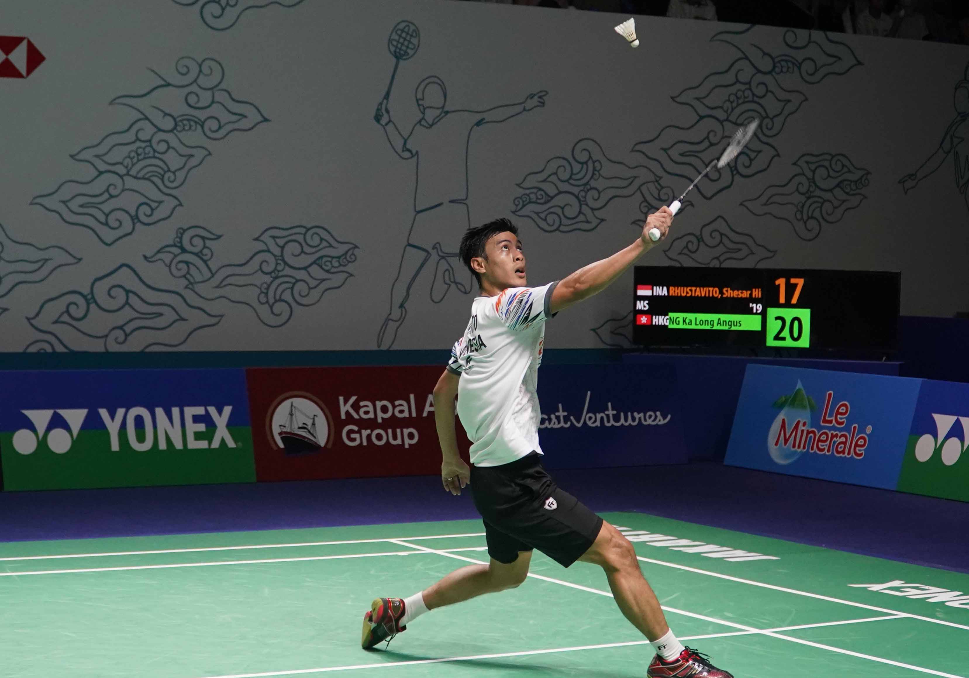 Shesar Hiren Rhustavito (INA) dikalahkan tunggal putra Hongkong, NG Ka Long Angus melalui pertarungan tiga gim, 17-21, 21-11 dan 16-21 pada babak pertama gelaran turnamen bulutangkis East Ventures Indonesia Open 2022 di Istora Gelora Bung Karno Senayan, Jakarta, 15 Juni 2022 (Foto : HO/Humas PP PBSI/Erly Bahtiar/Sportsmoment),